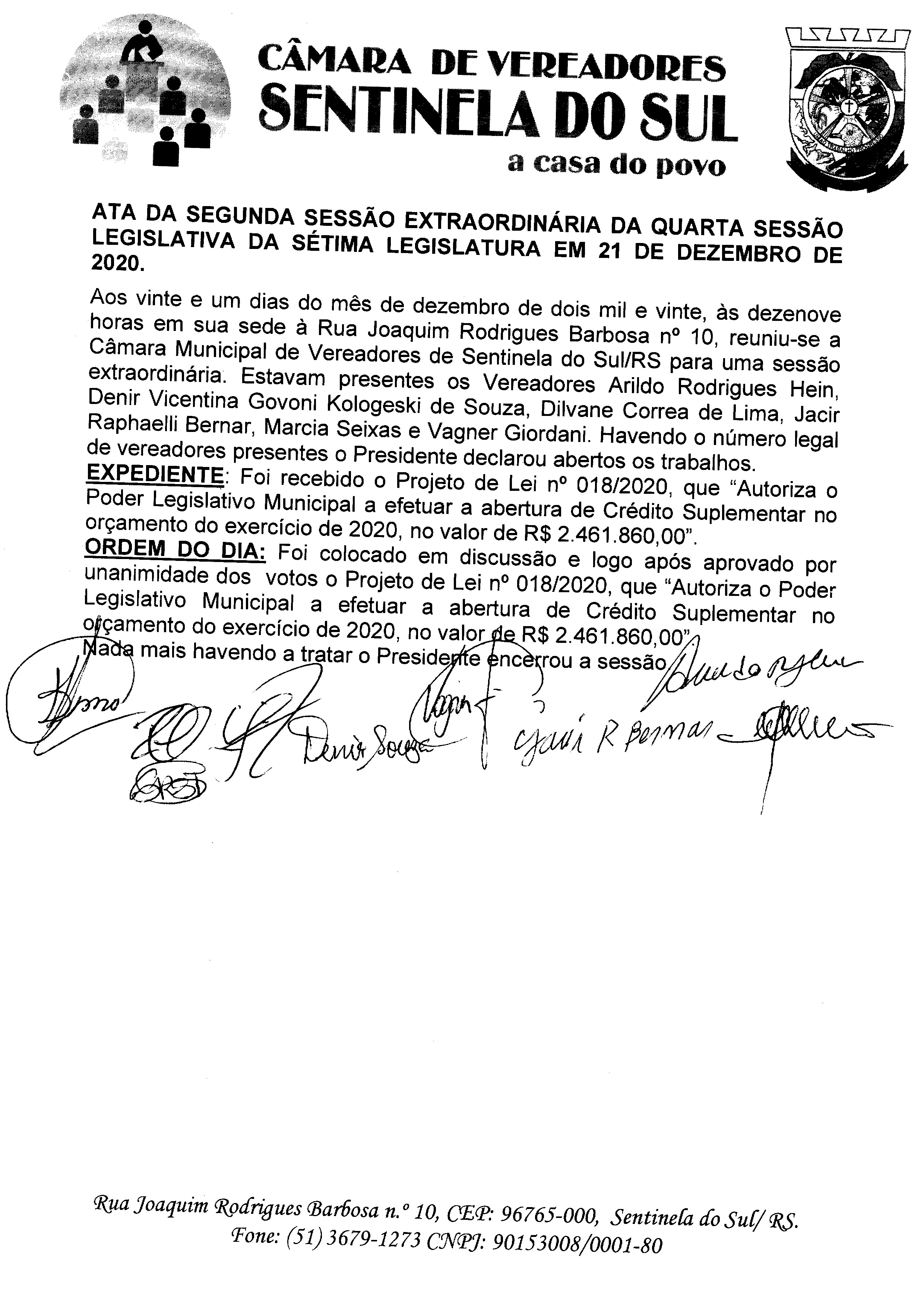 ATA DA 2º SESSÃO EXTRAORDINARIA DO DIA 21 DE DEZEMBRO DE 2020