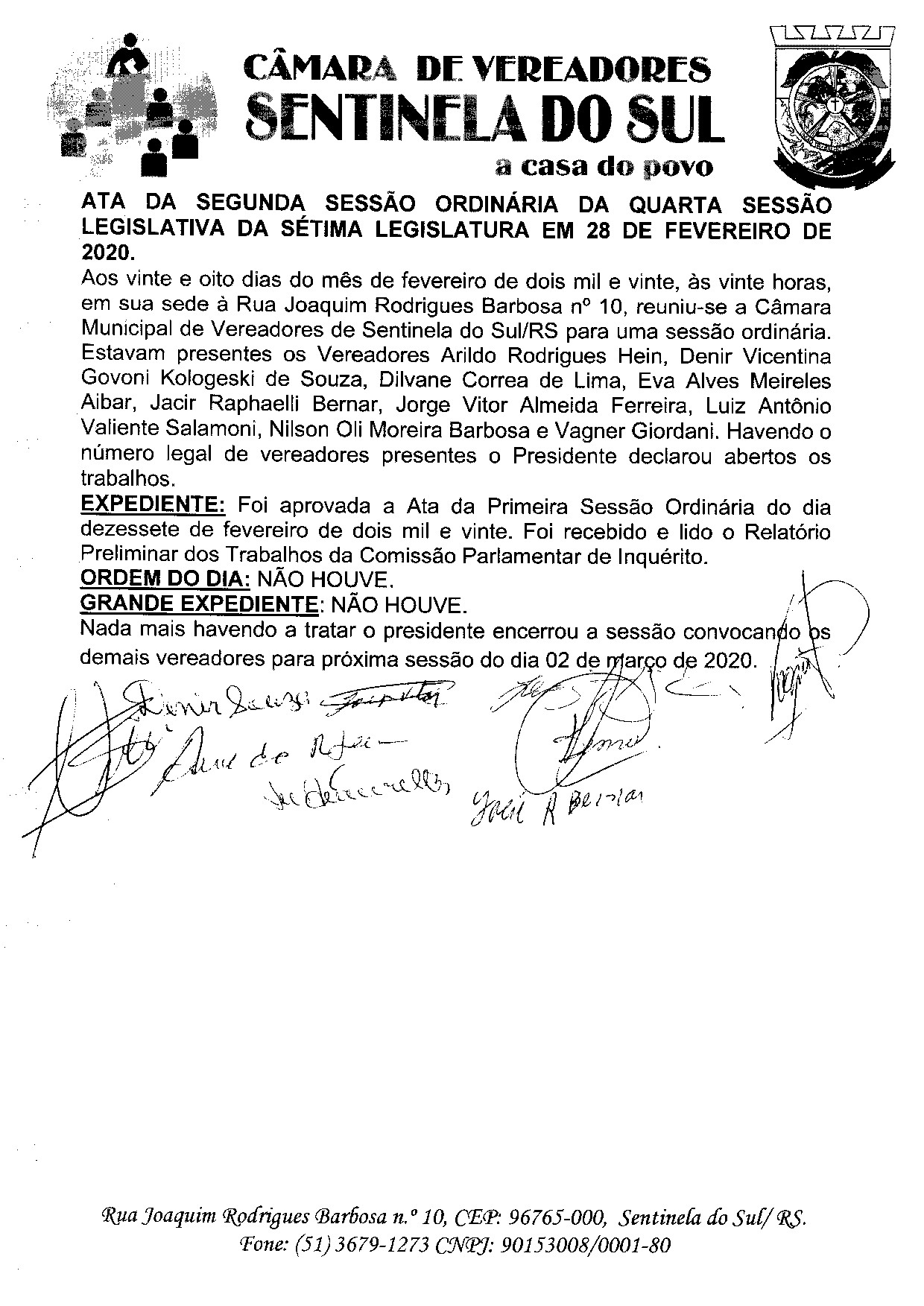 ATA DA 2º SESSÃO ORDINARIA DO DIA 28 DE FEVEREIRO DE 2020