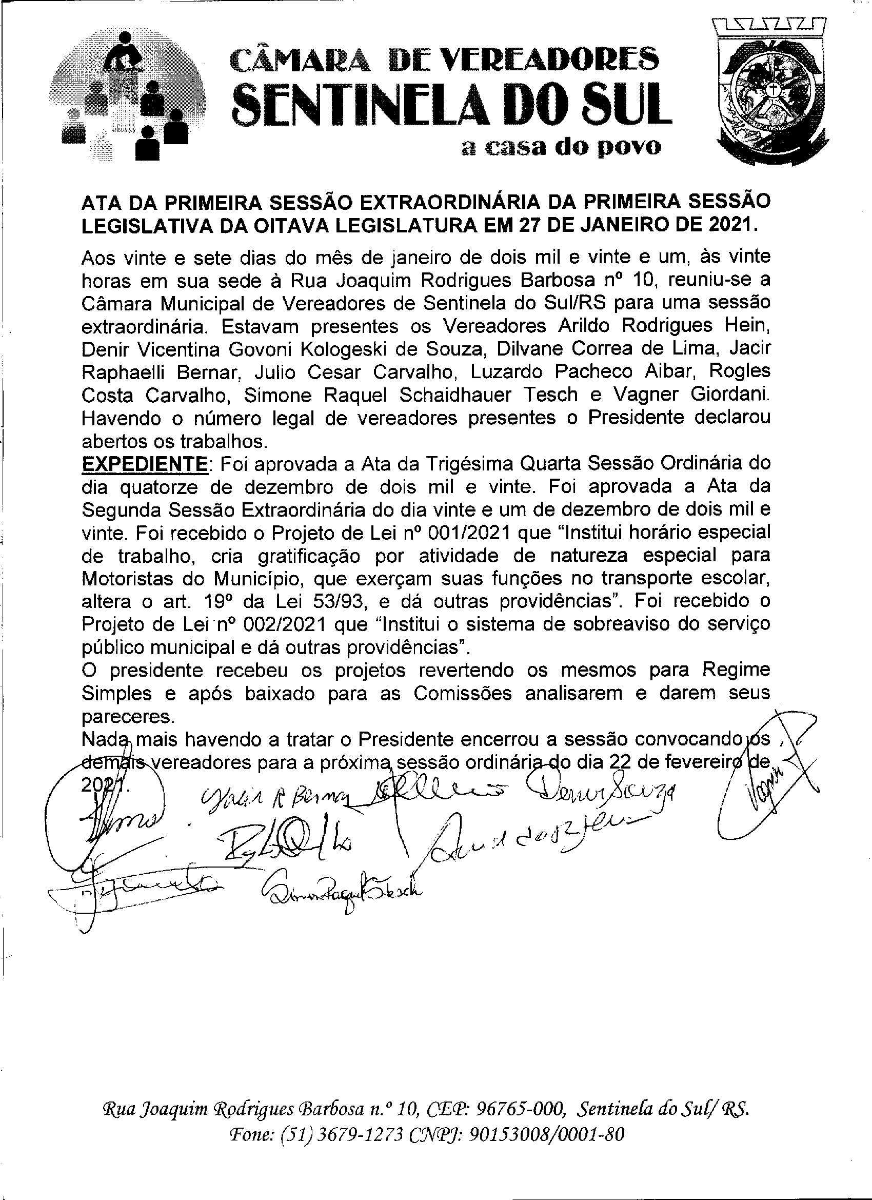 ATA DA 1º SESSÃO EXTRAORDINARIA DO DIA 27 DE JANEIRO DE 2021