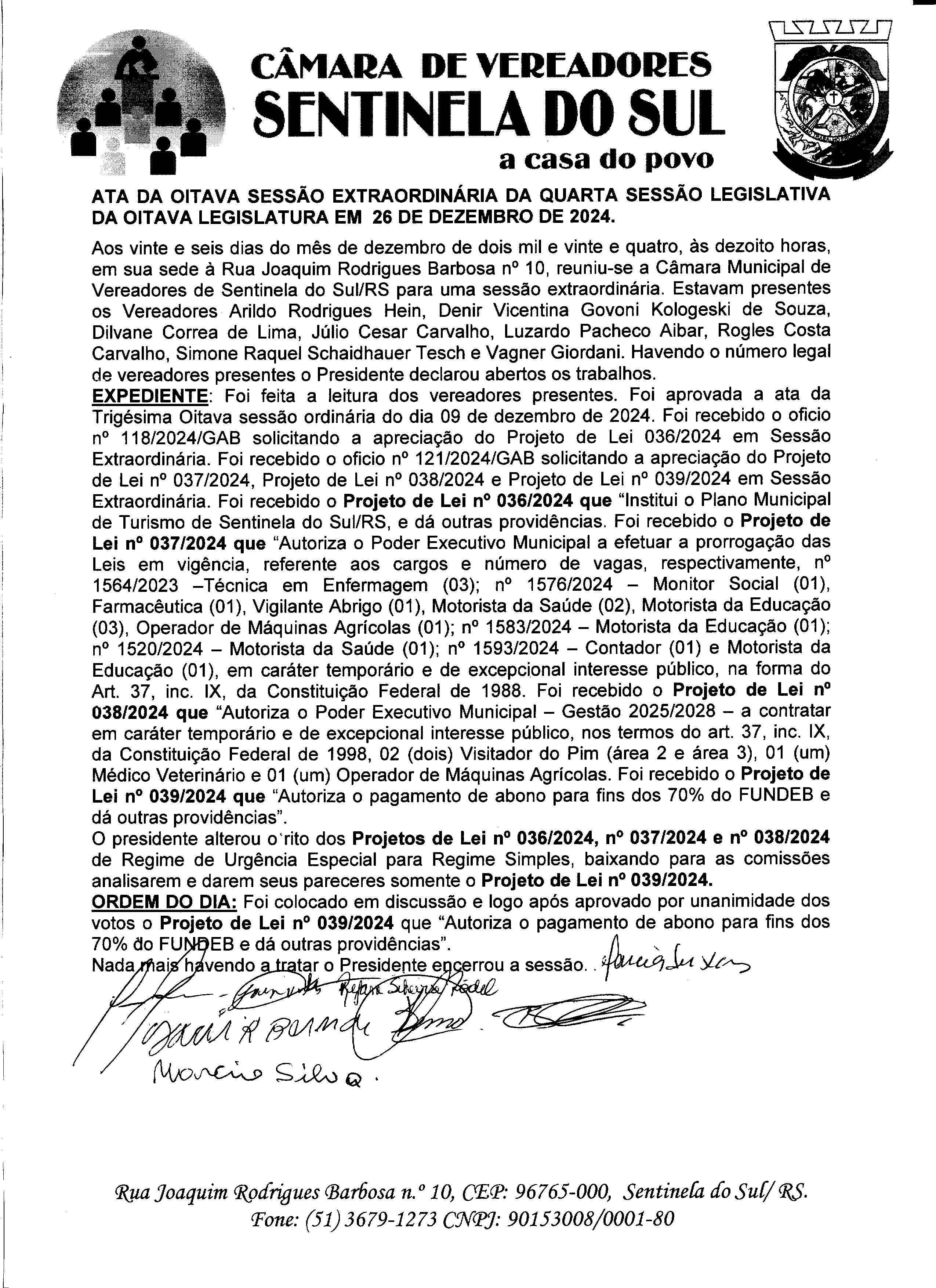 8º Sessão Extraordinaria do dia 26 de dezembro de 2024