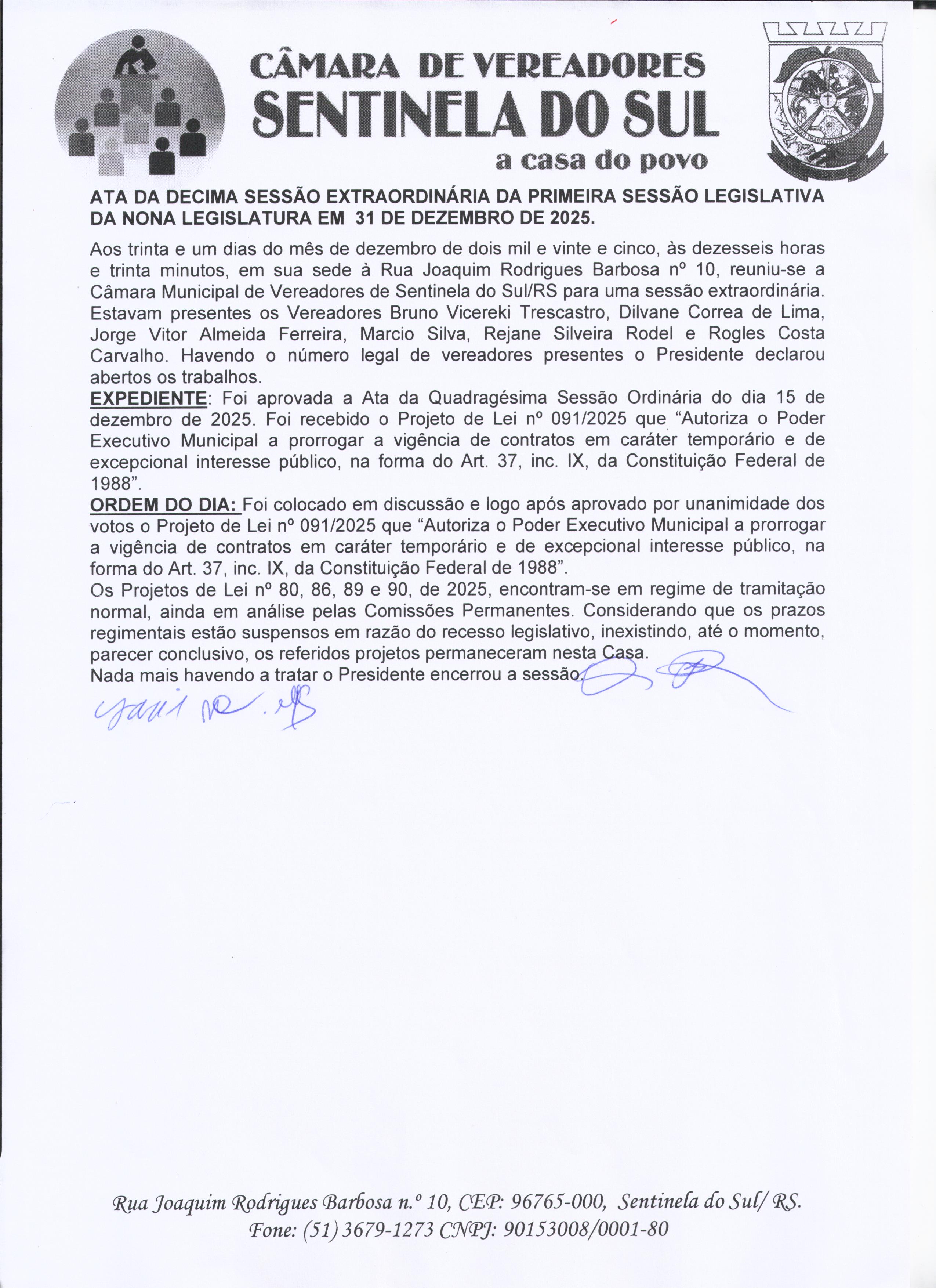 Ata da 10º Sessão Extraordinária do dia 31 de dezembro de 2025