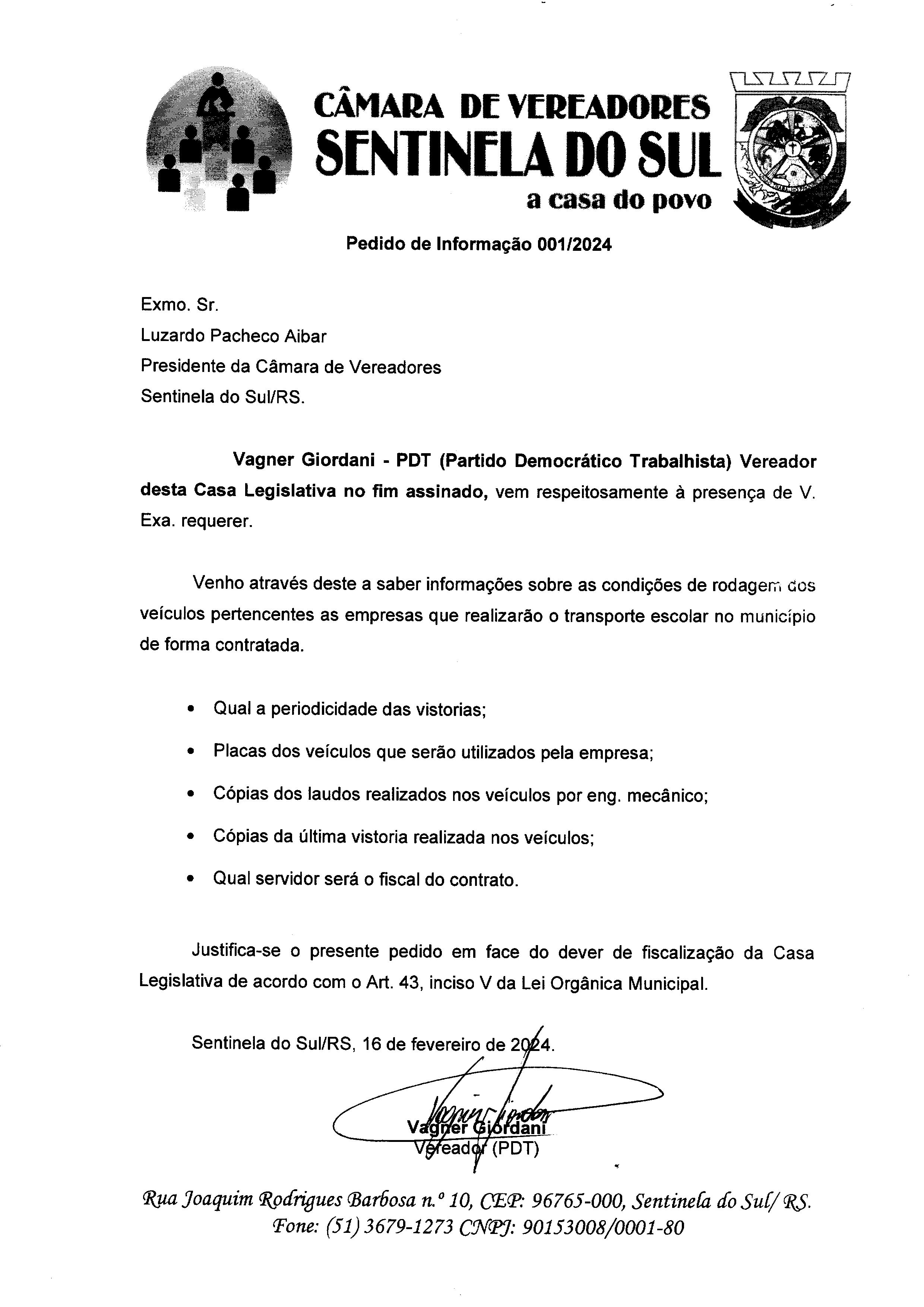 Pedido de Informação nº 001/2024