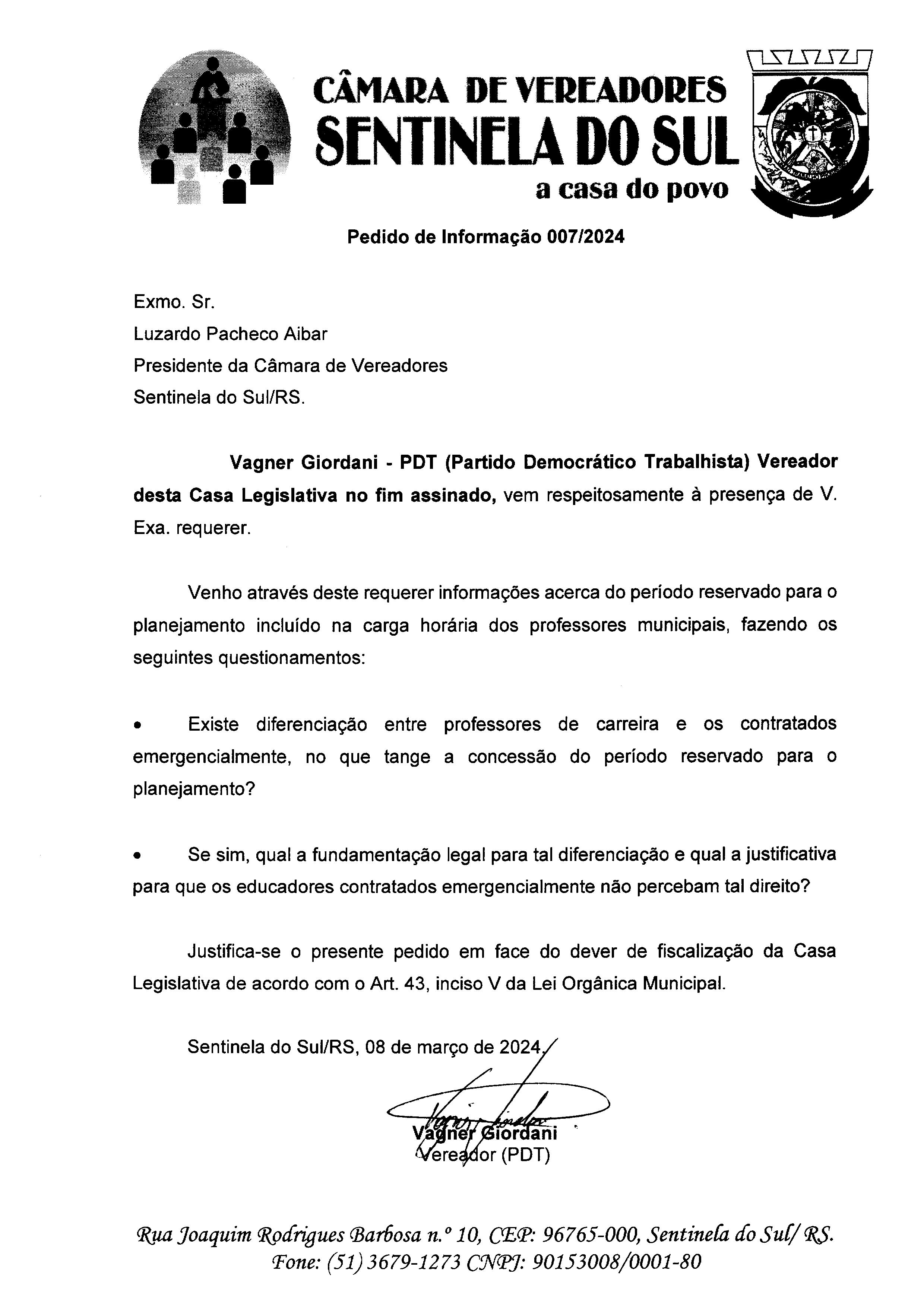 Pedido de Informação nº 007/2024