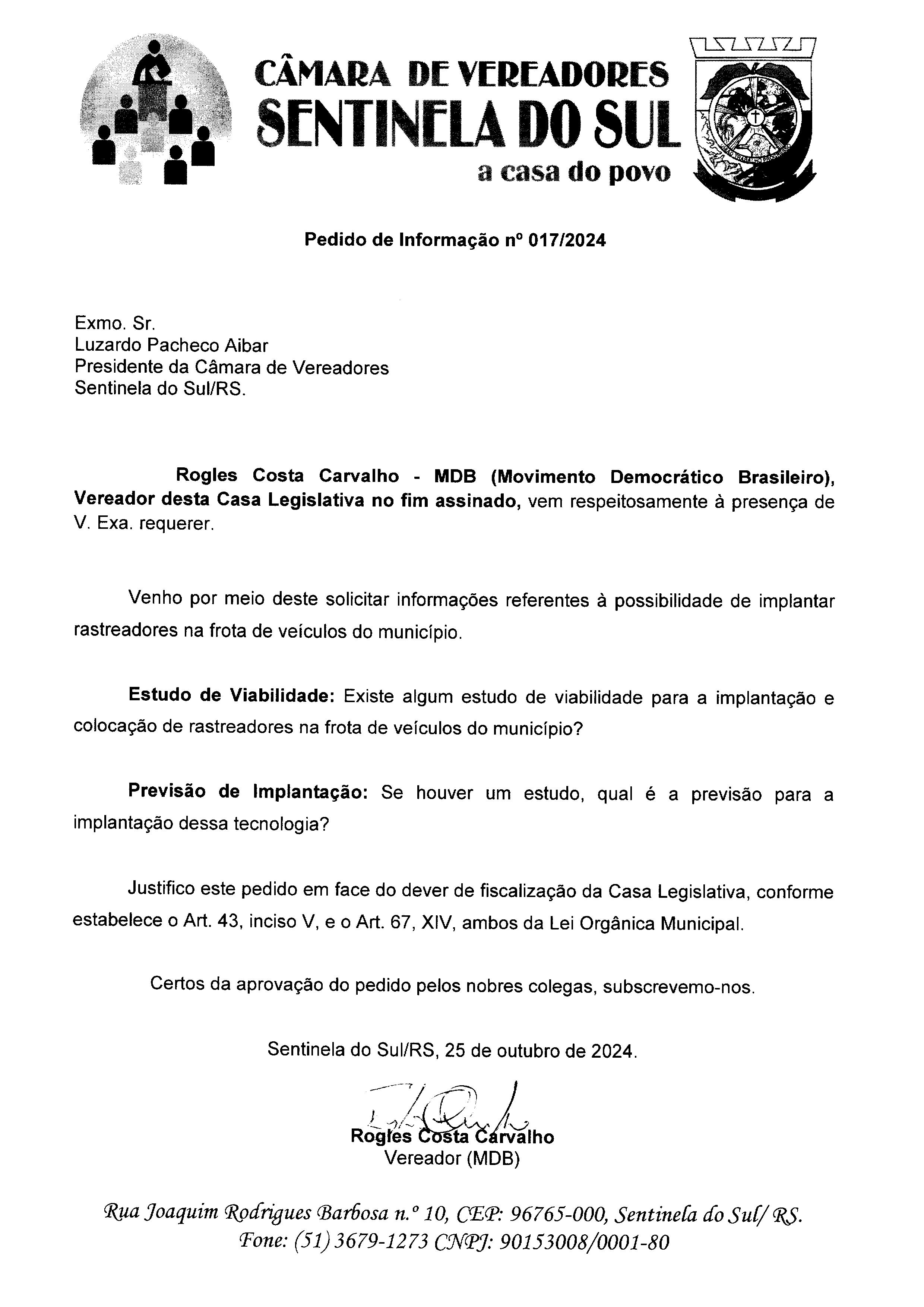 Pedido de Informação nº 017/2024