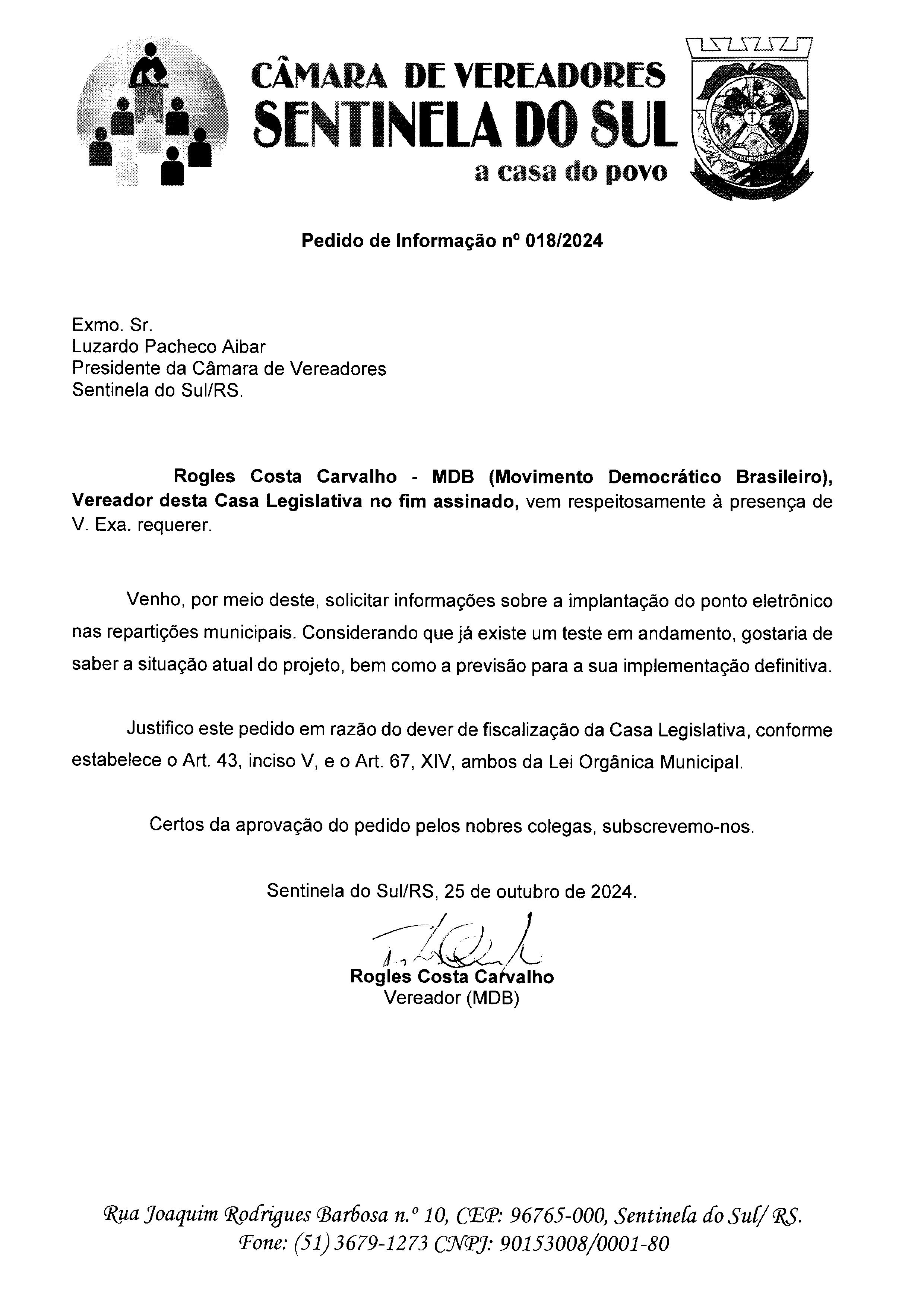 Pedido de Informação nº 018/2024