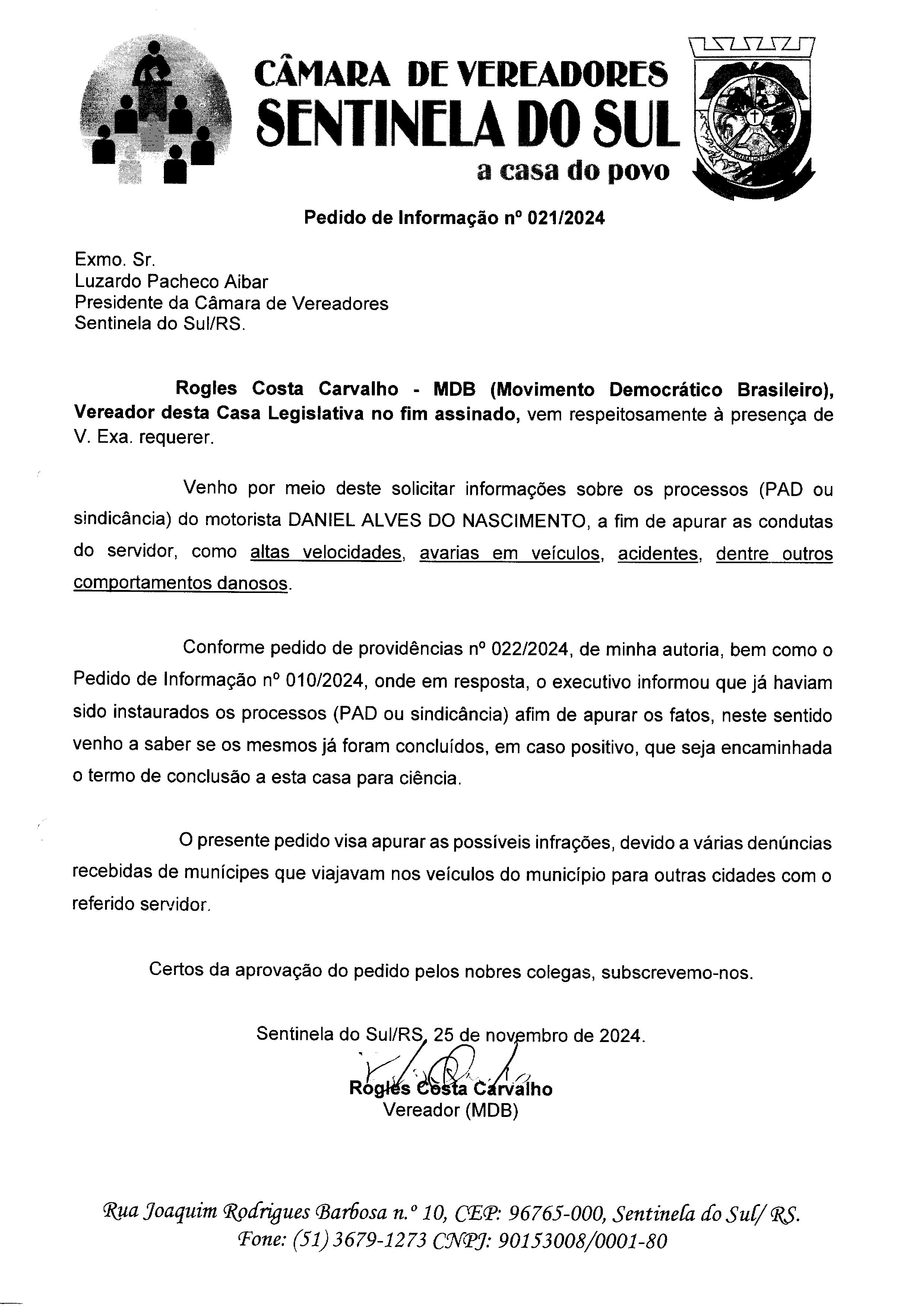 Pedido de Informação nº 021/2024