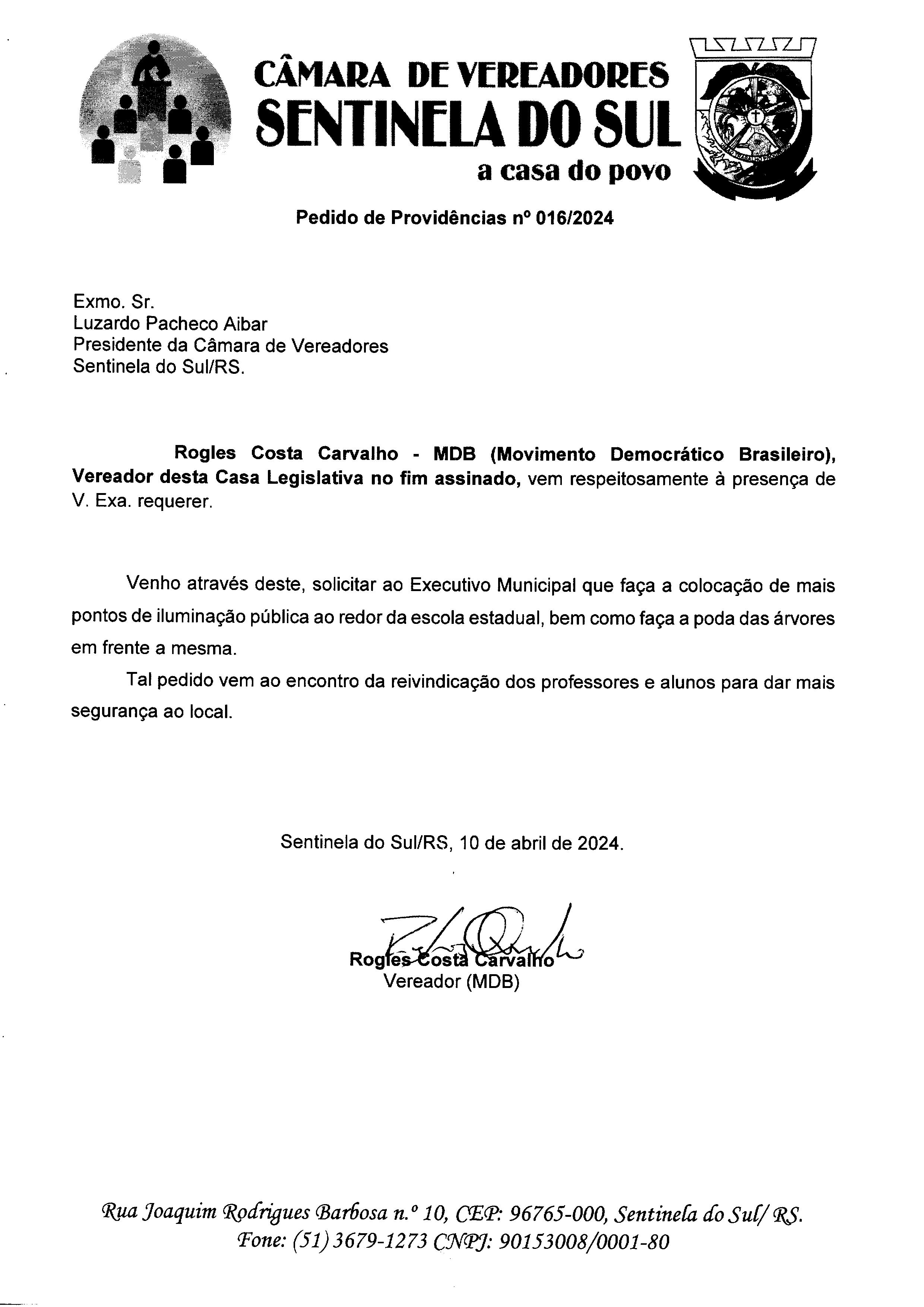 Pedido de Providências nº 016/2024