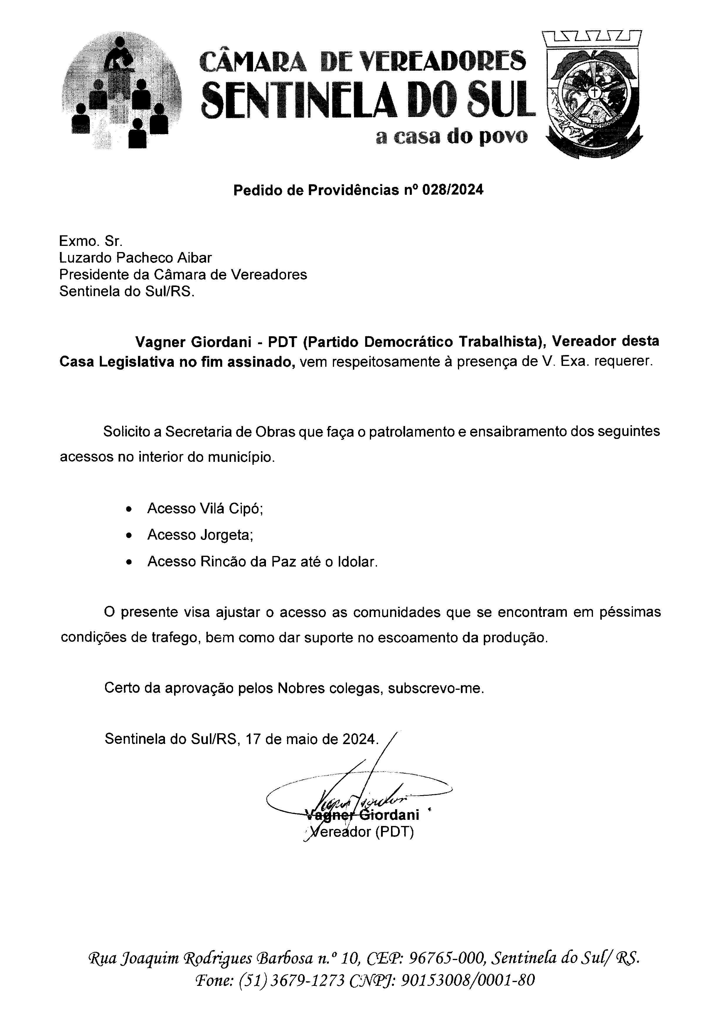 Pedido de Providências nº 028/2024