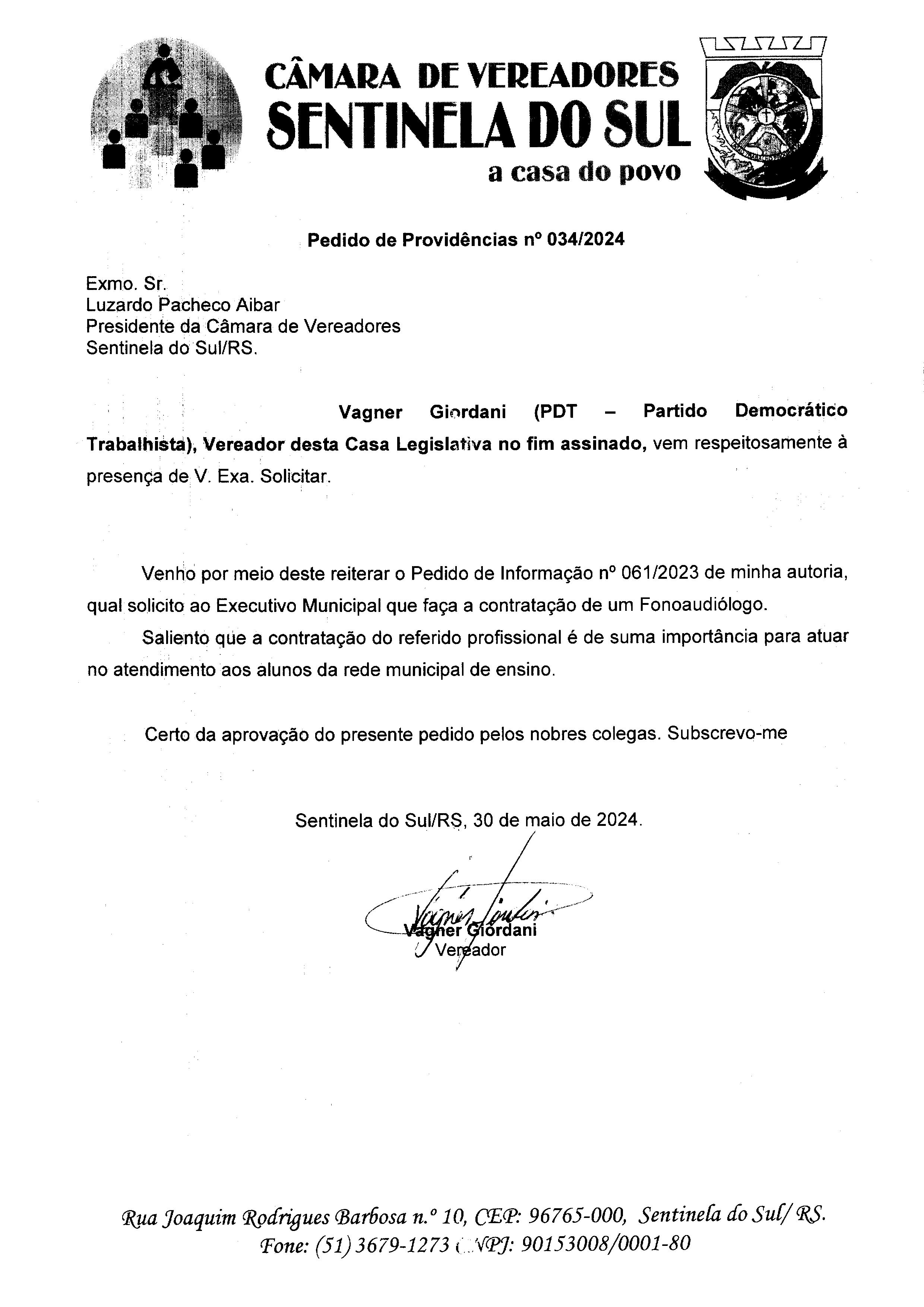 Pedido de Providências nº 034/2024