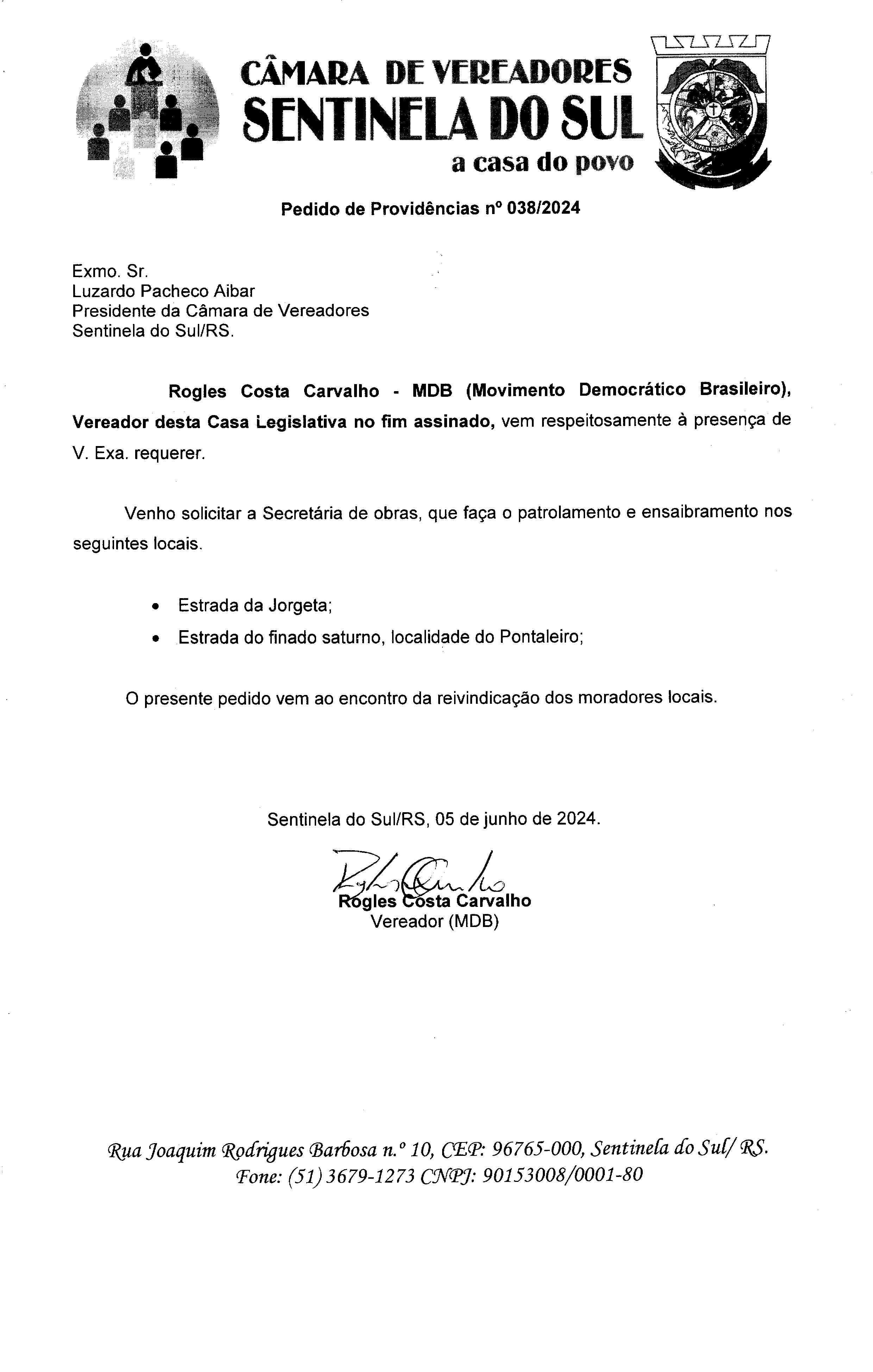 Pedido de Providências nº 038/2024