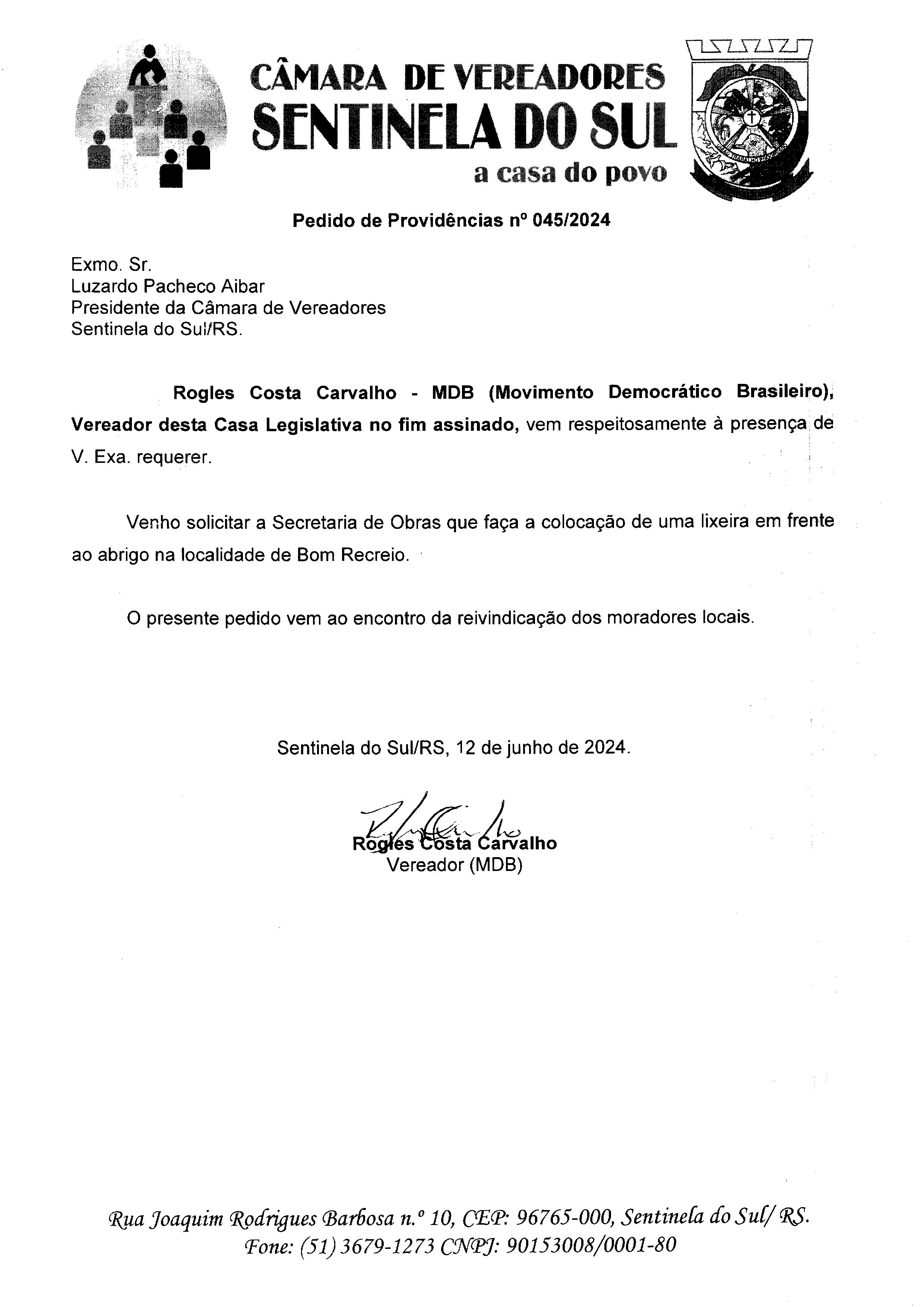 Pedido de Providências nº 045/2024