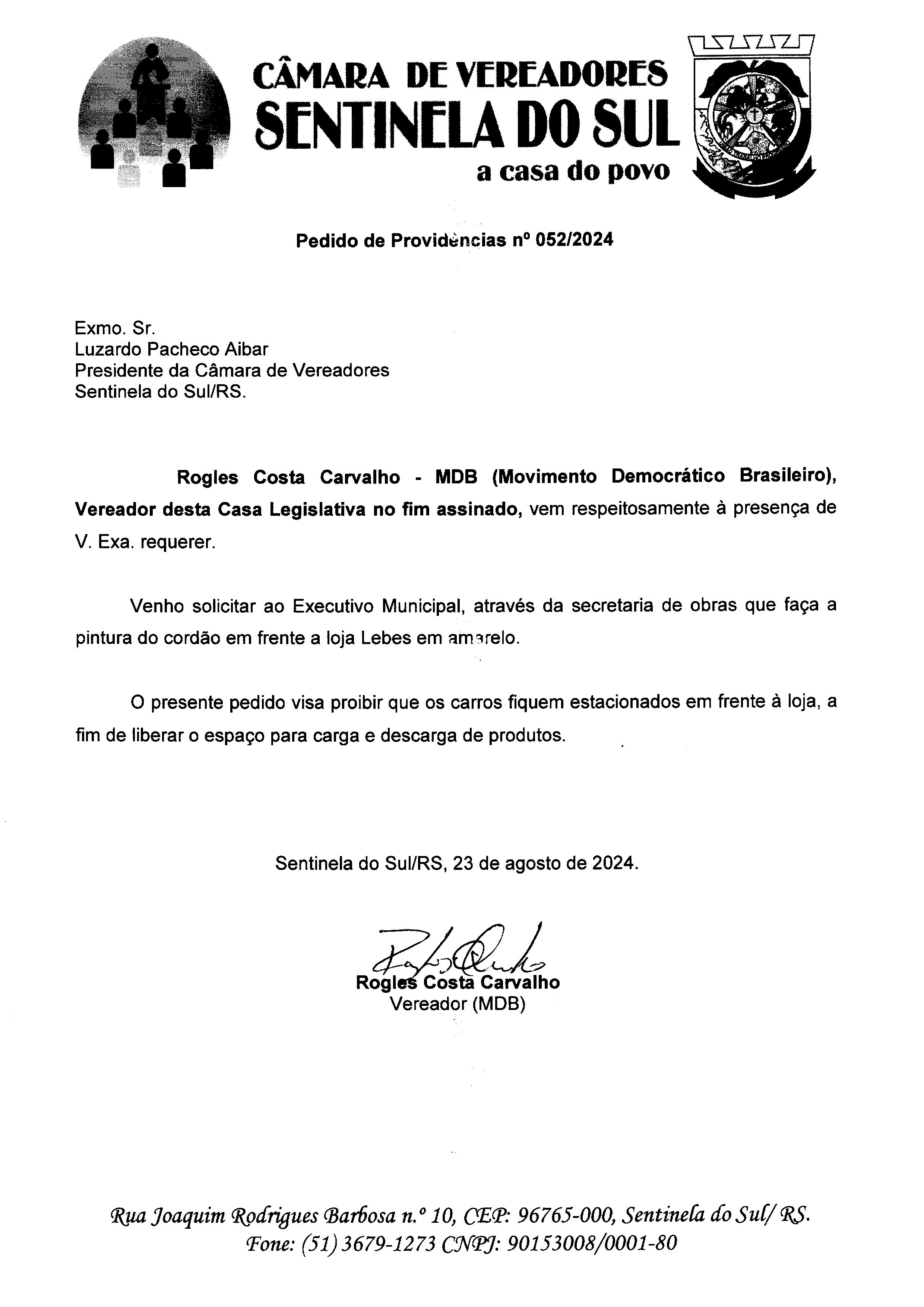 Pedido de Providências de autoria do Vereador Rogles Costa Carvalho