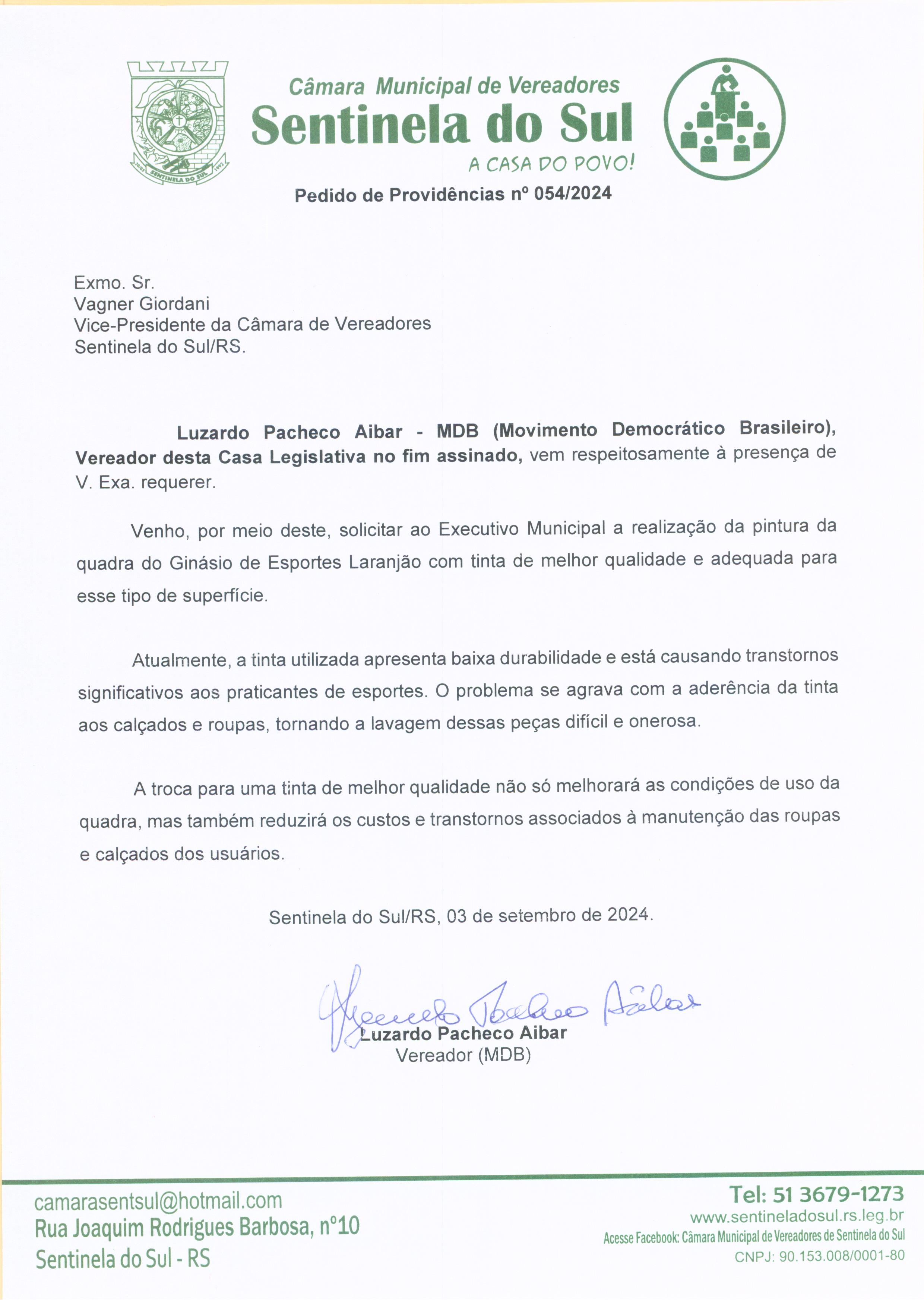 Pedido de Providências nº 054/2024
