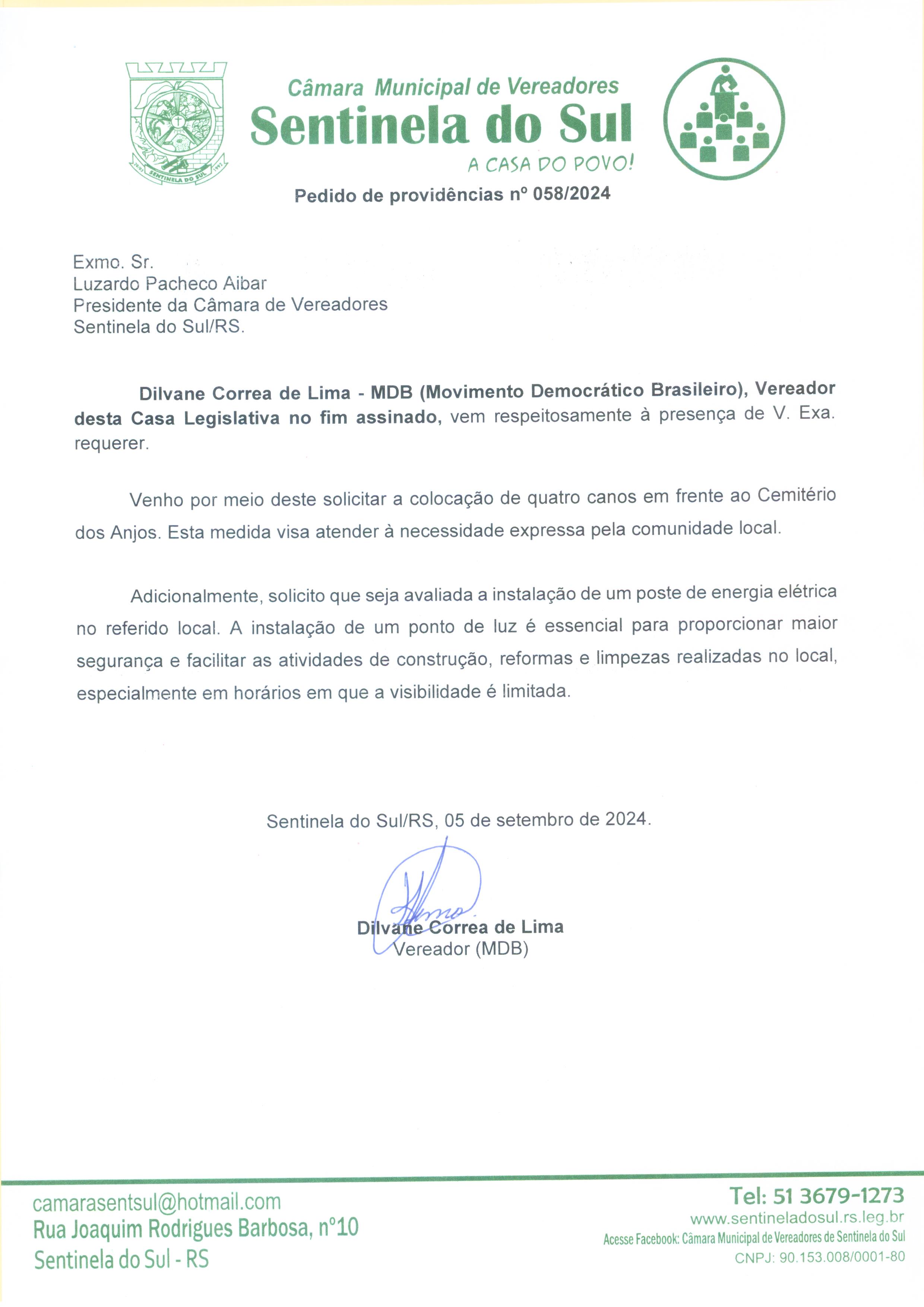 Pedido de Providências de autoria do Vereador Dilvane Correa de Lima