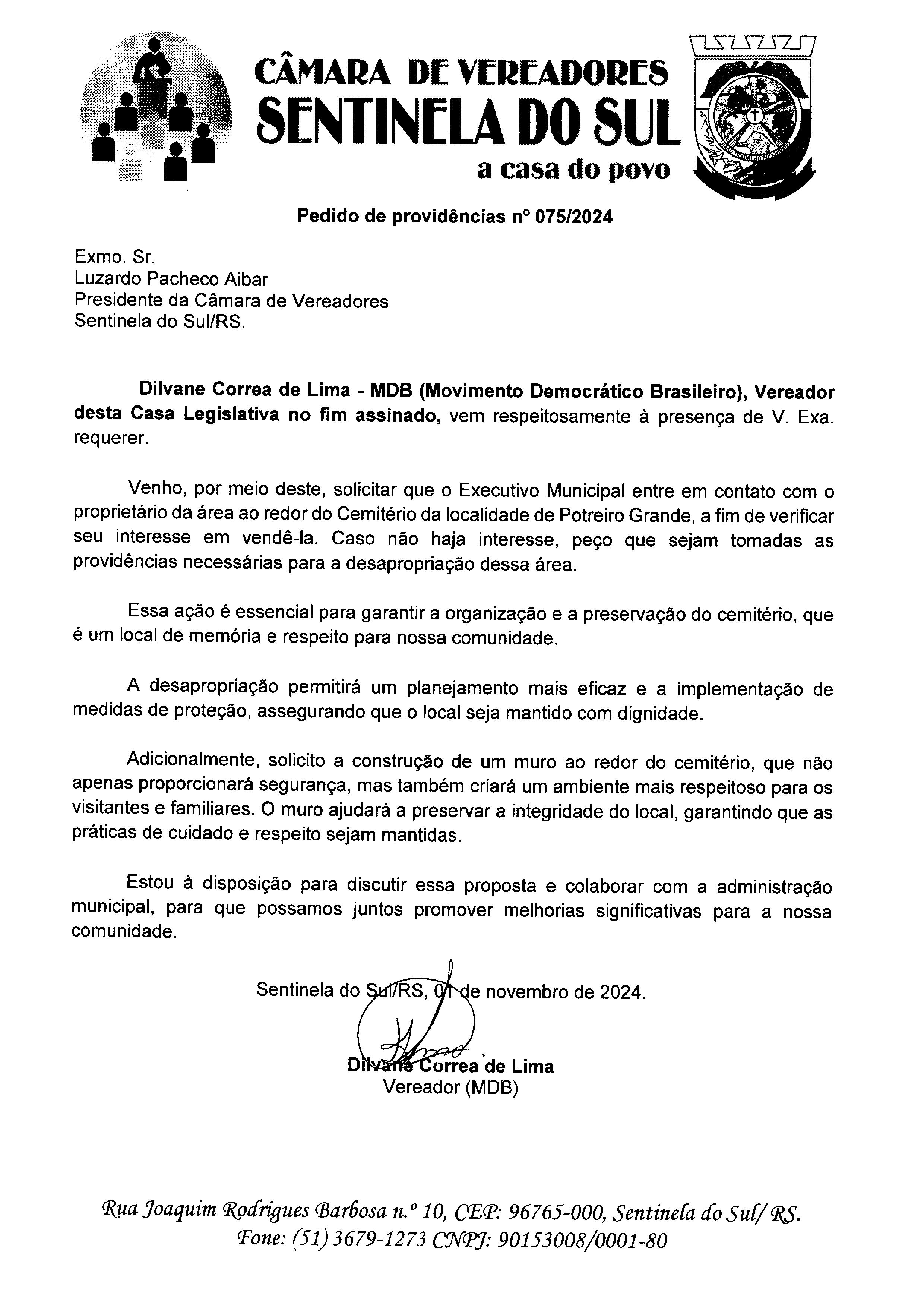 Pedido de Providências nº 075/2024