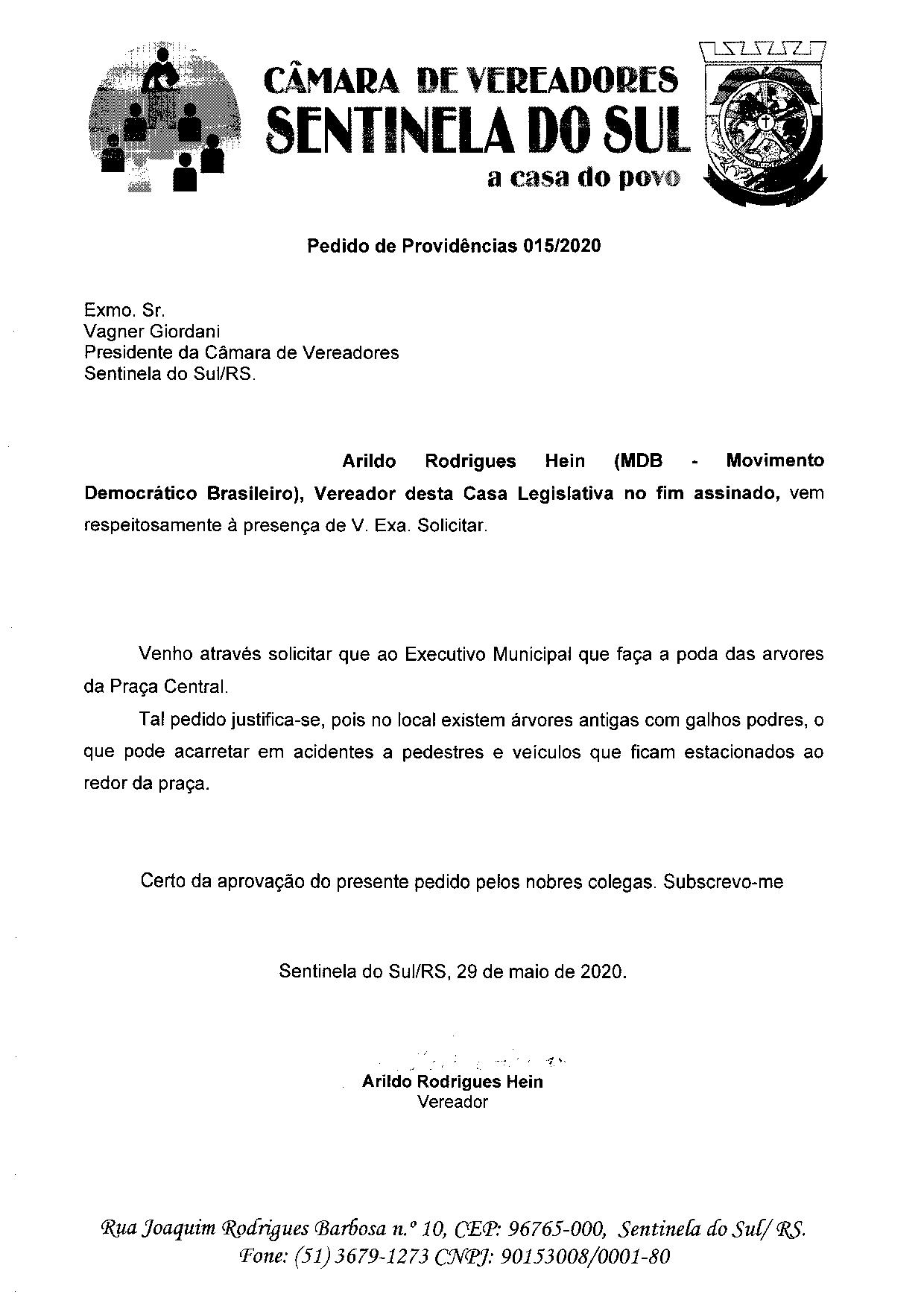 PEDIDO DE PROVIDÊNCIAS Nº 015/2020