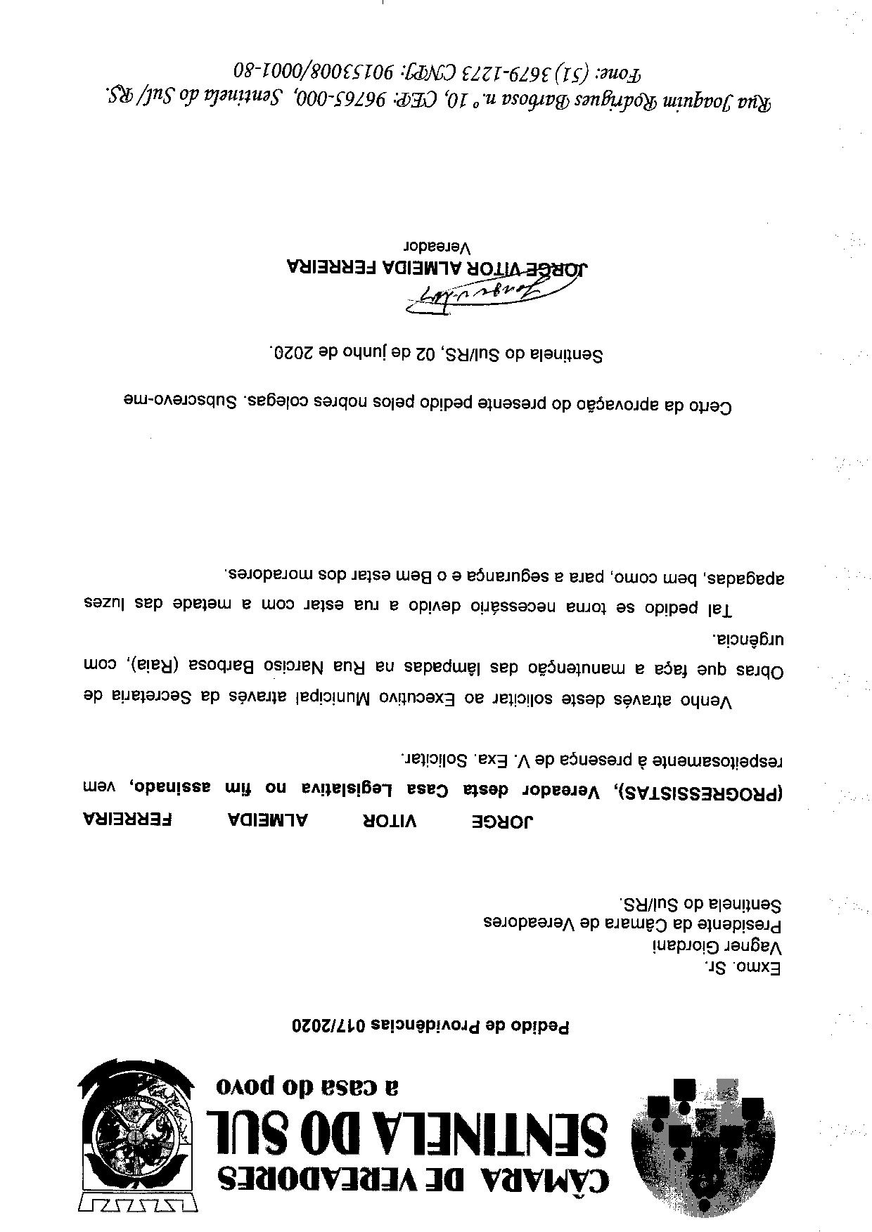 PEDIDO DE PROVIDÊNCIAS Nº 017/2020