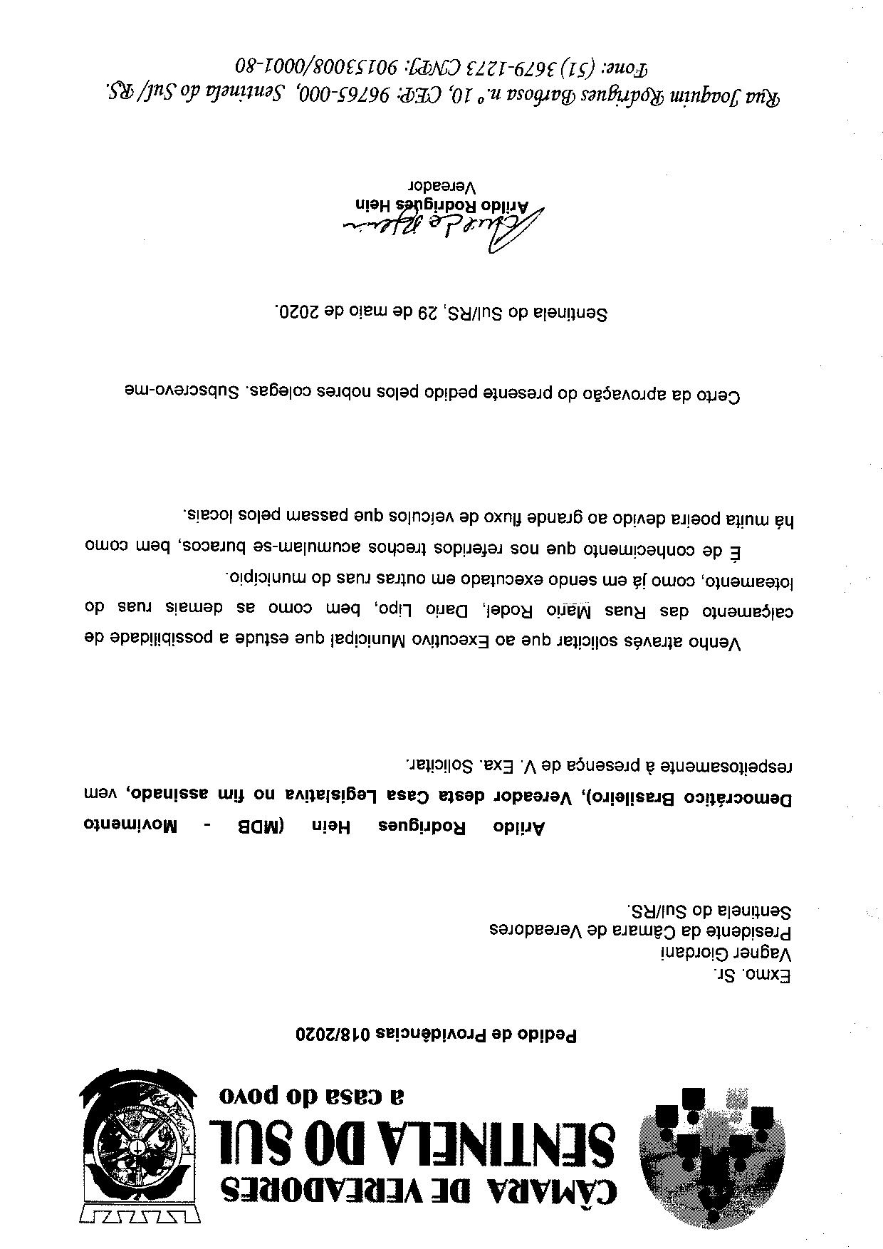 PEDIDO DE PROVIDÊNCIAS Nº 018/2020