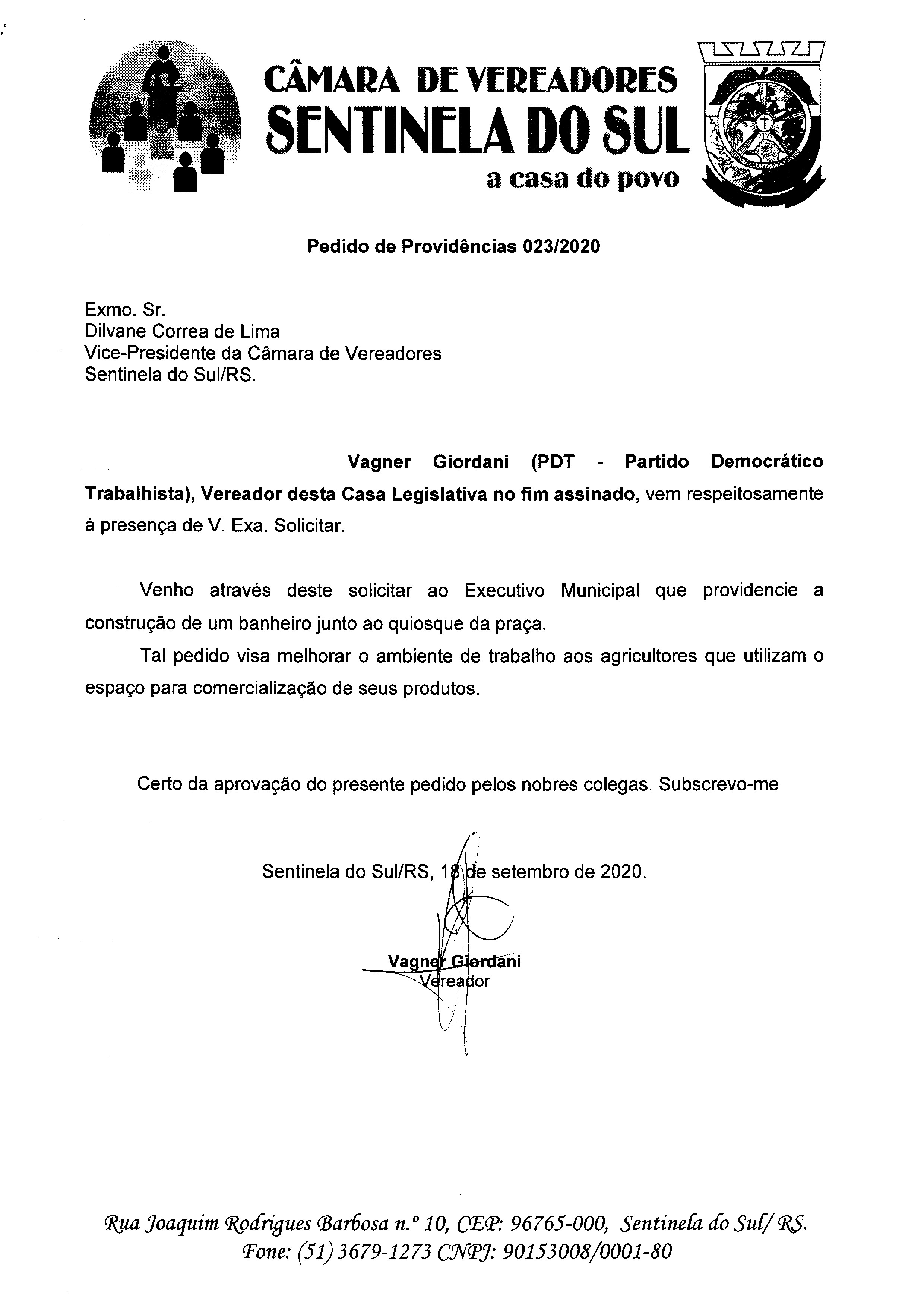 PEDIDO DE PROVIDÊNCIAS Nº 023/2020