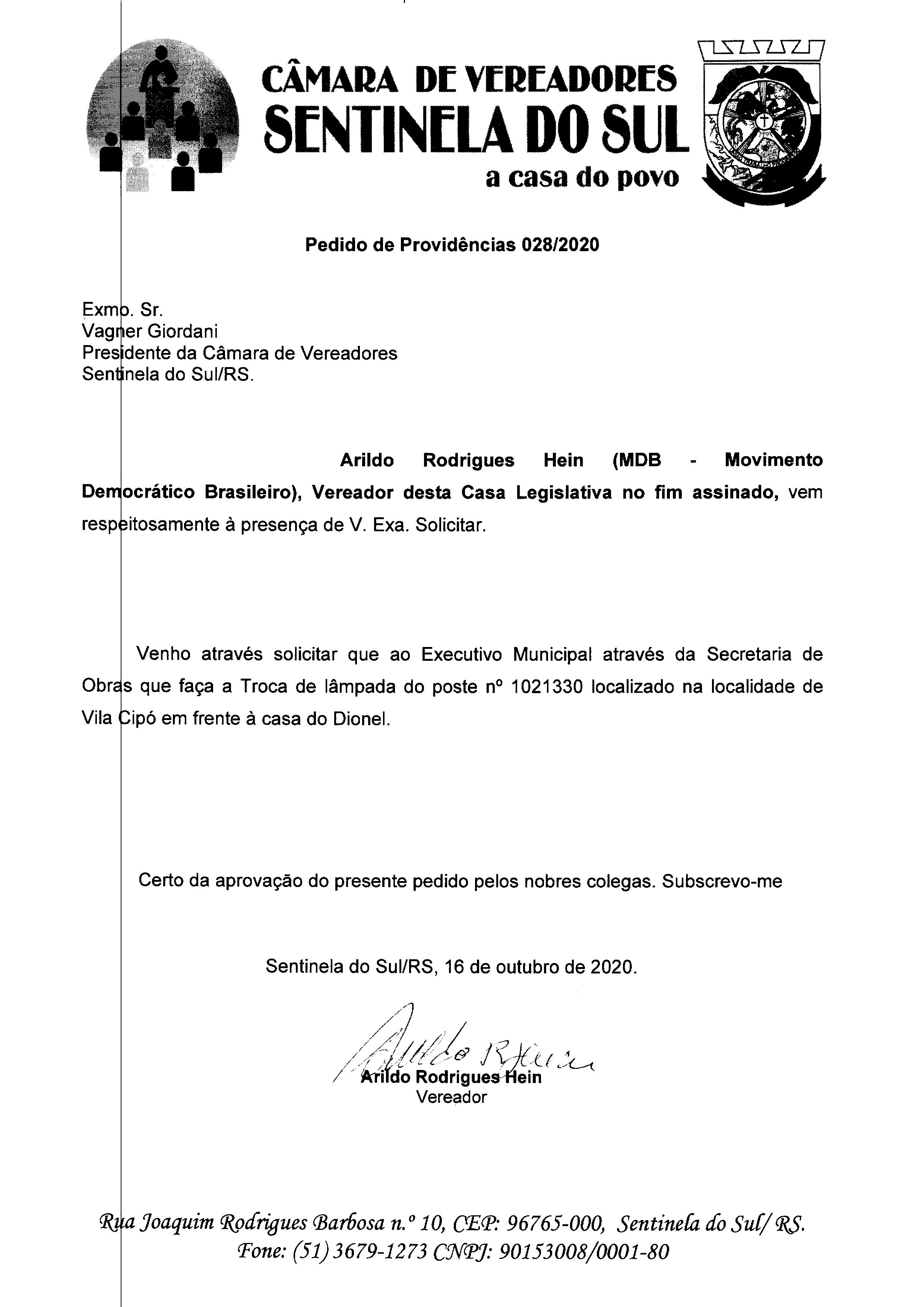 PEDIDO DE PROVIDÊNCIAS Nº 028/2020