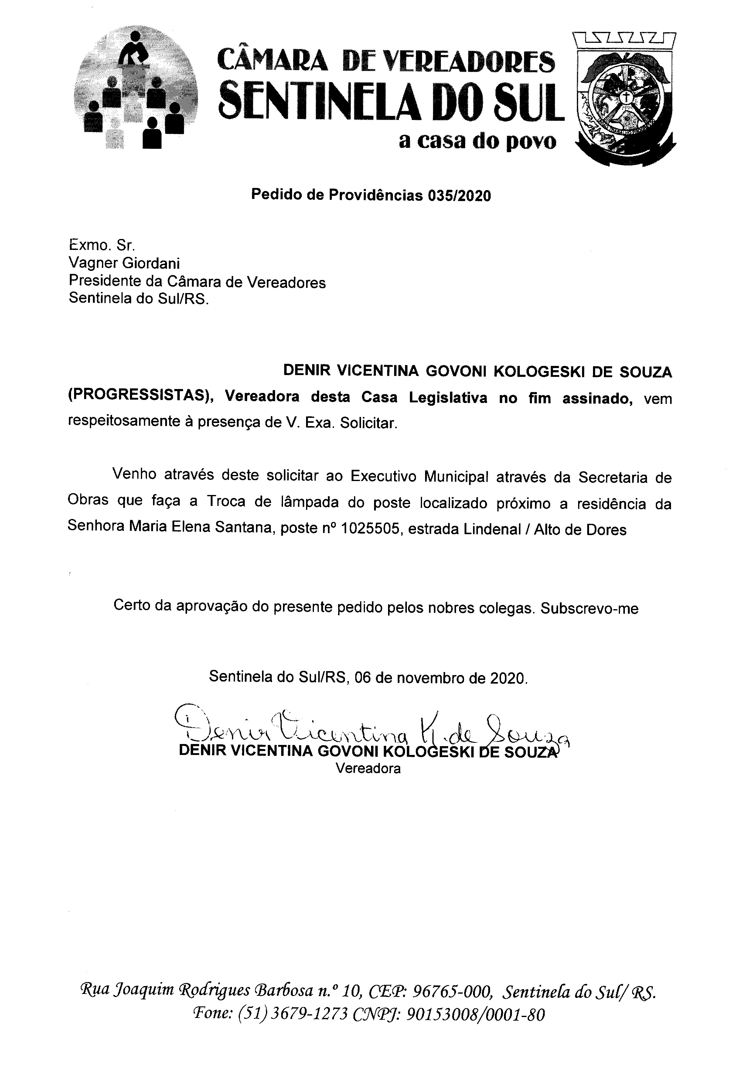 PEDIDO DE PROVIDÊNCIAS Nº 035/2020