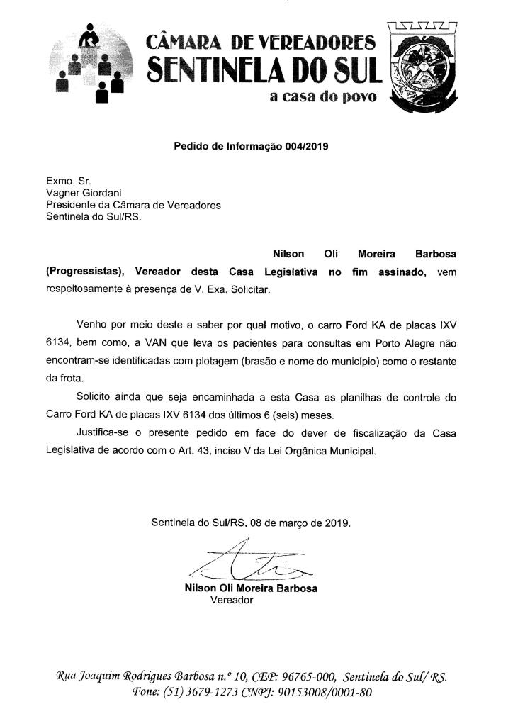 PEDIDO DE INFORMAÇÃO 004/2019