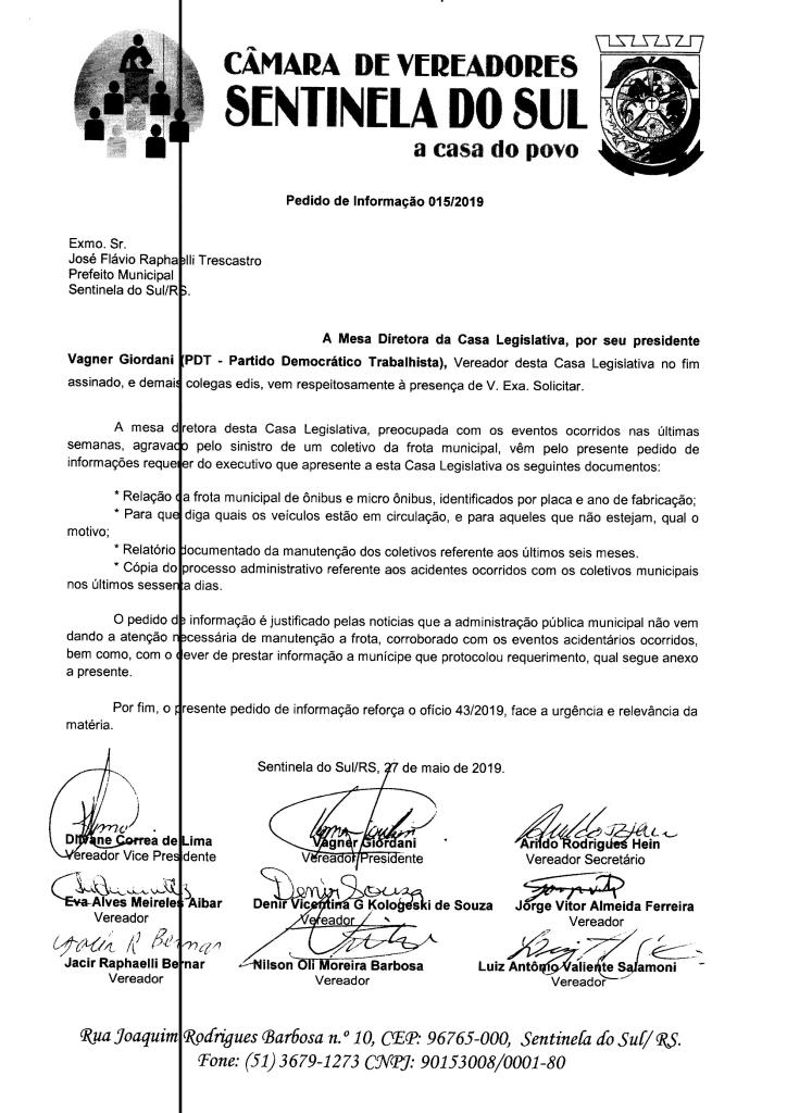 PEDIDO DE INFORMAÇÃO 015/2019