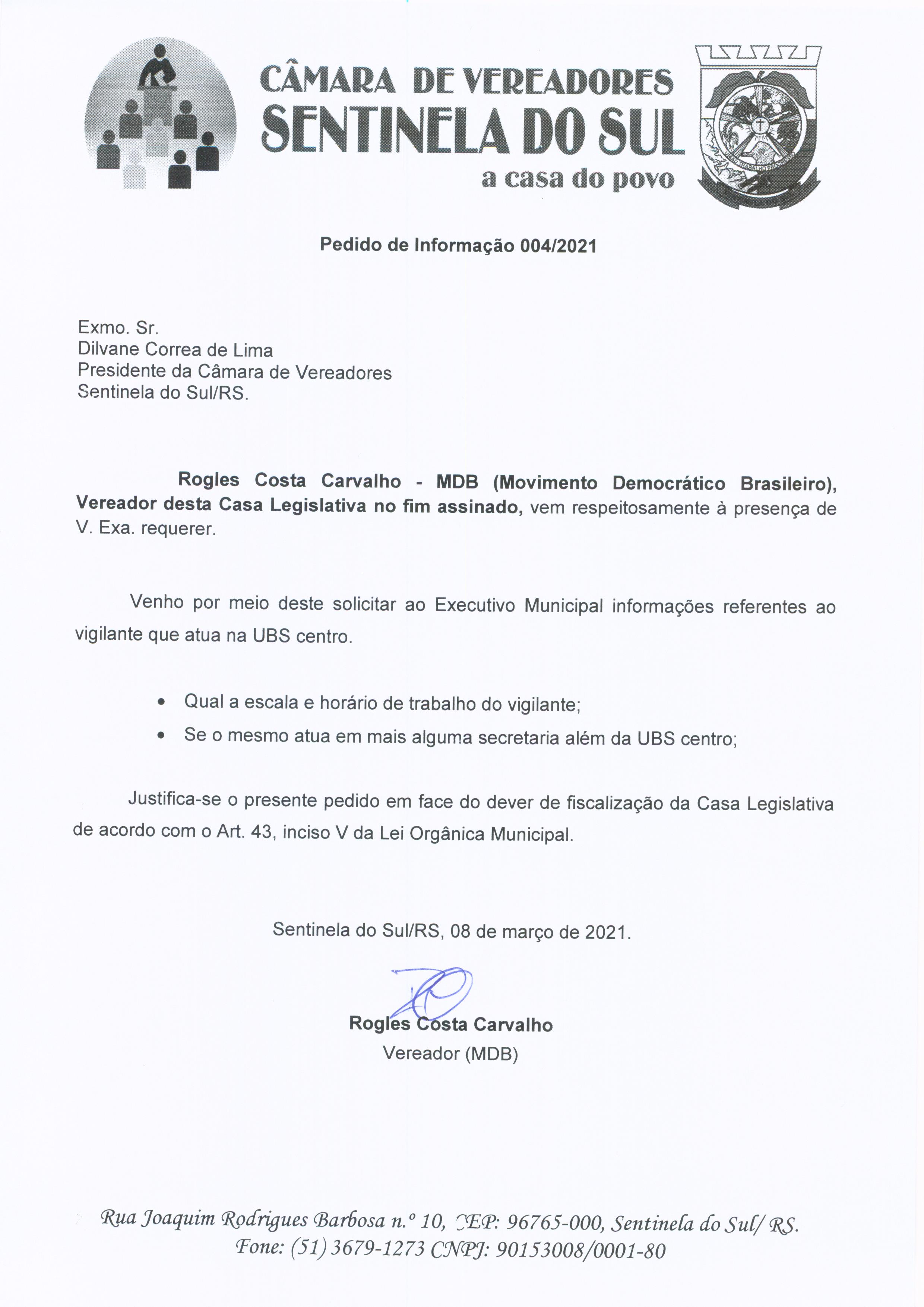Pedido de Informação nº 004/2021