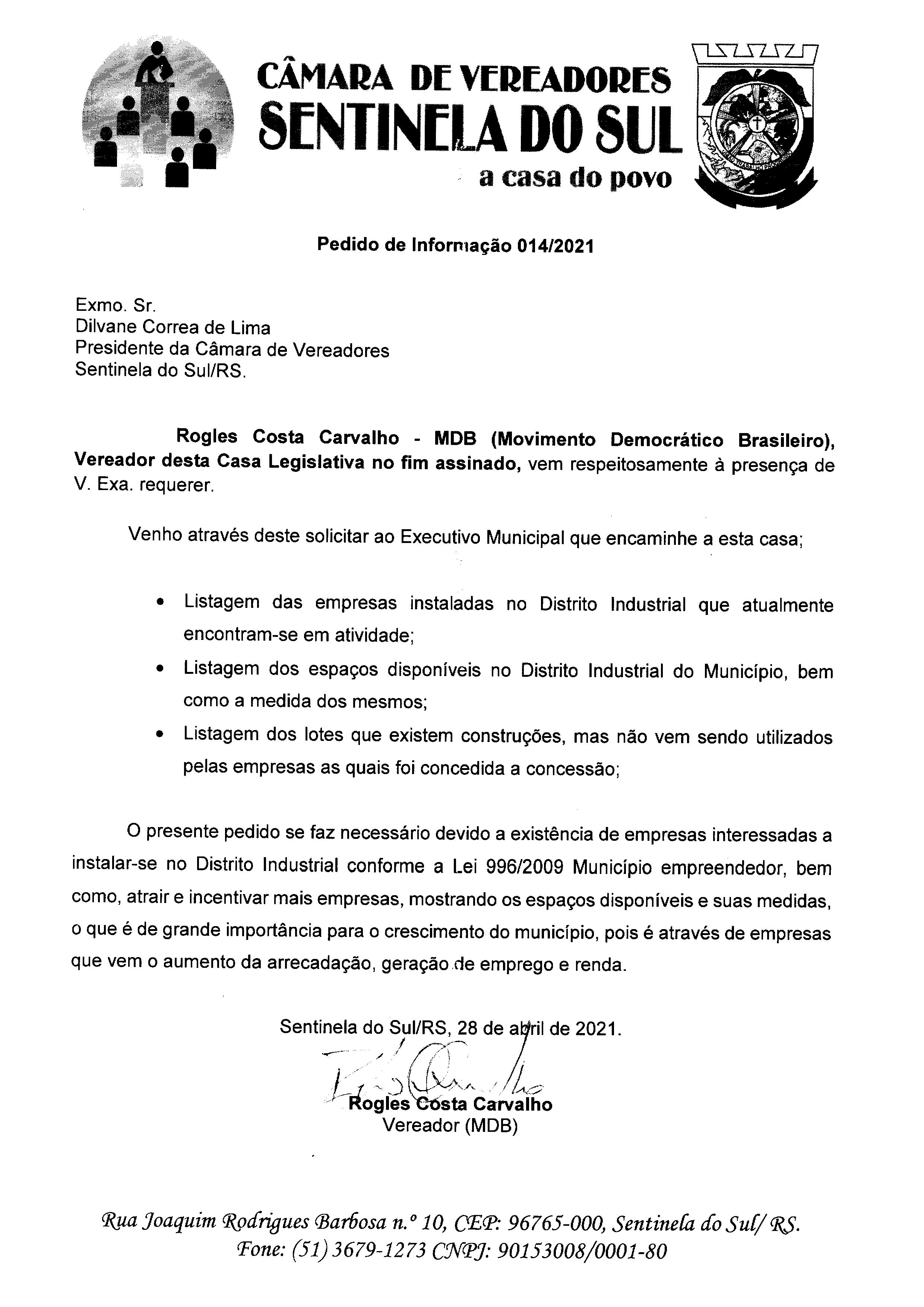 Pedido de Informação nº 014/2021