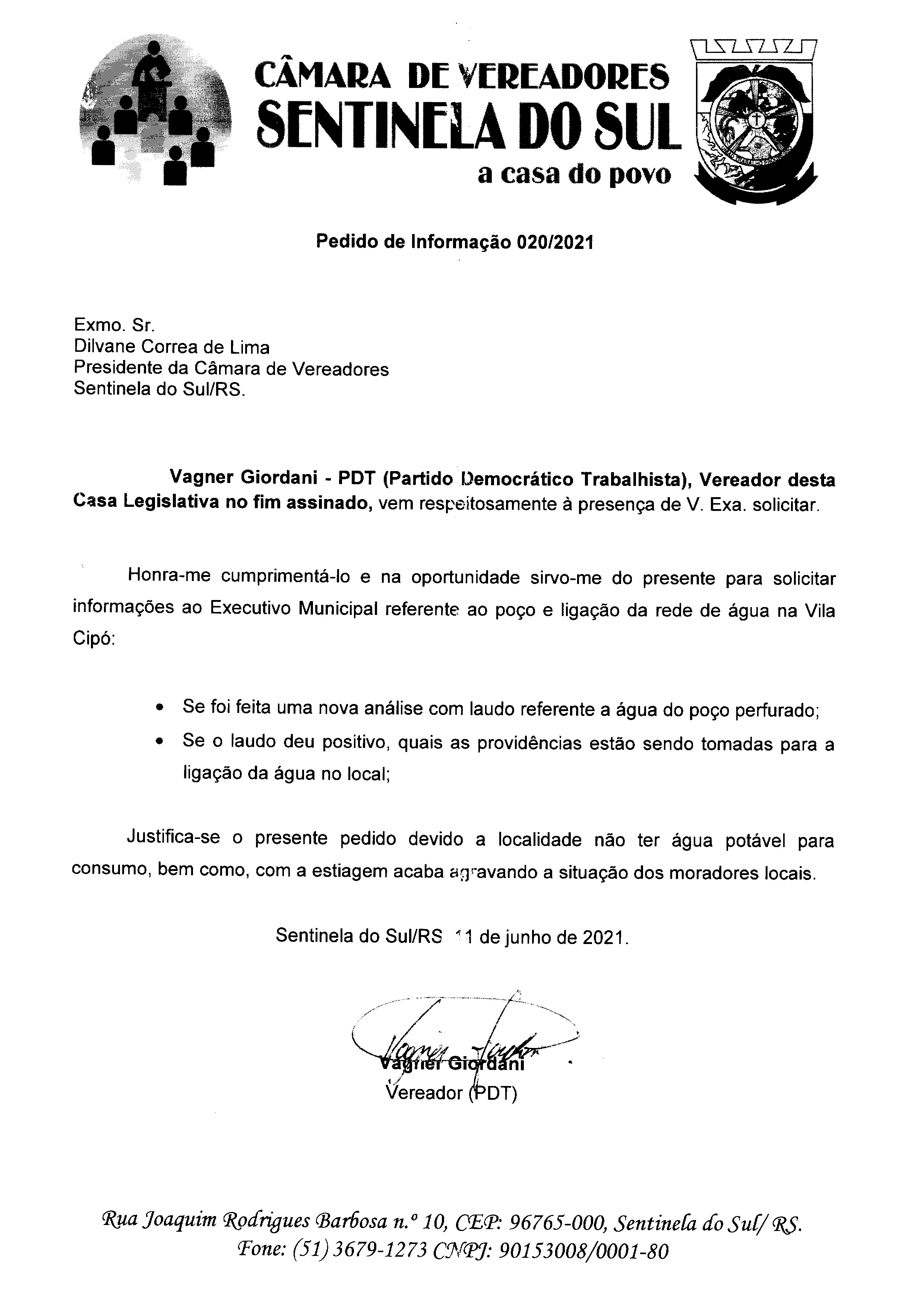 Pedido de Informação nº 020/2021