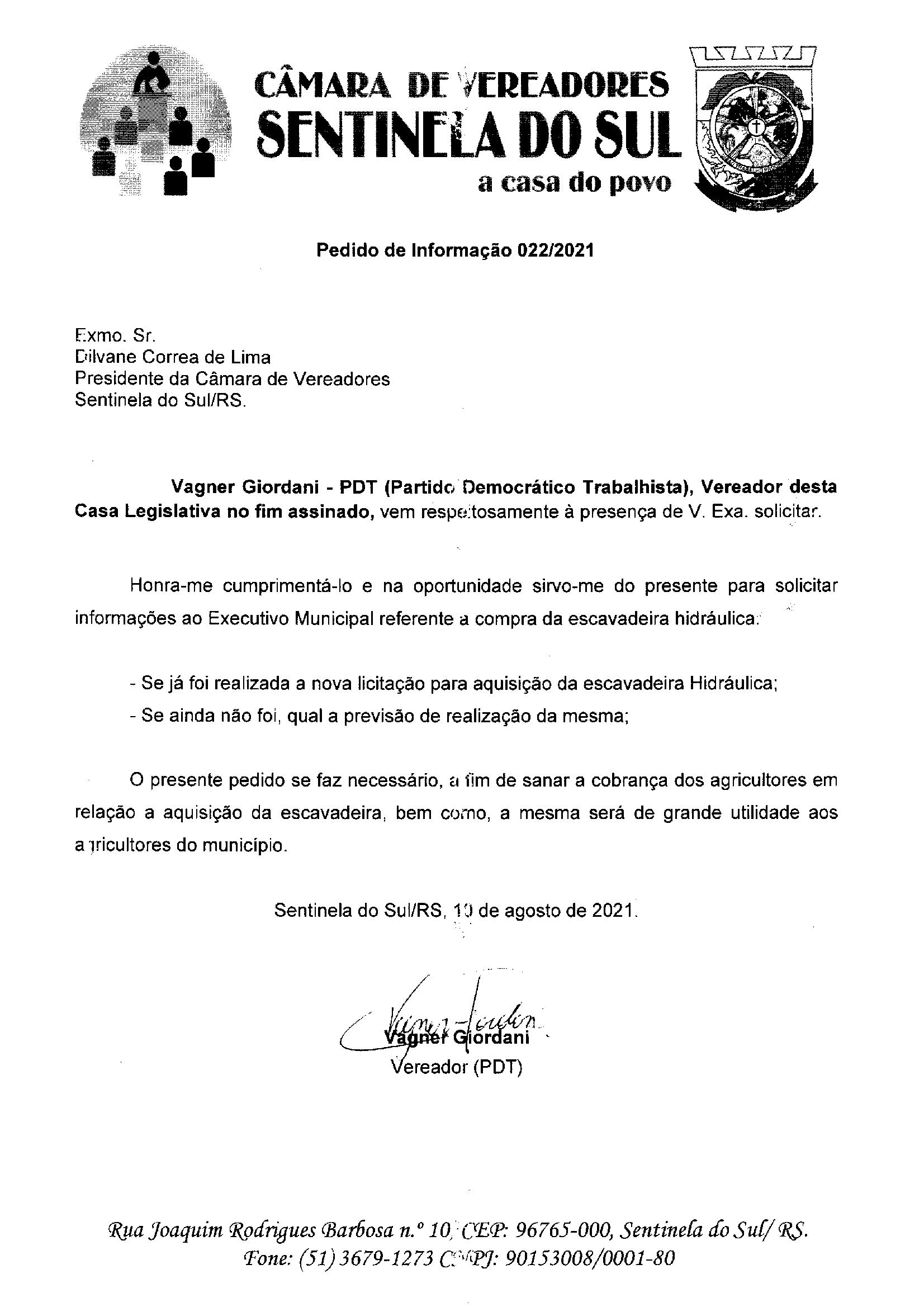 Pedido de Informação nº 022/2021