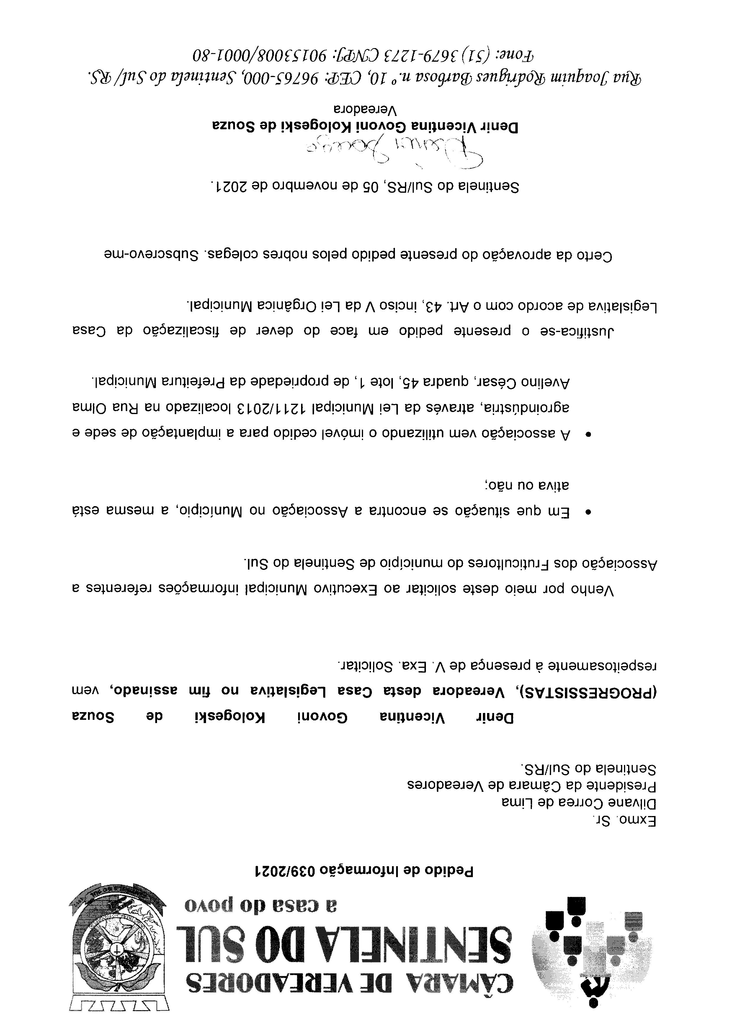Pedido de Informação nº 039/2021