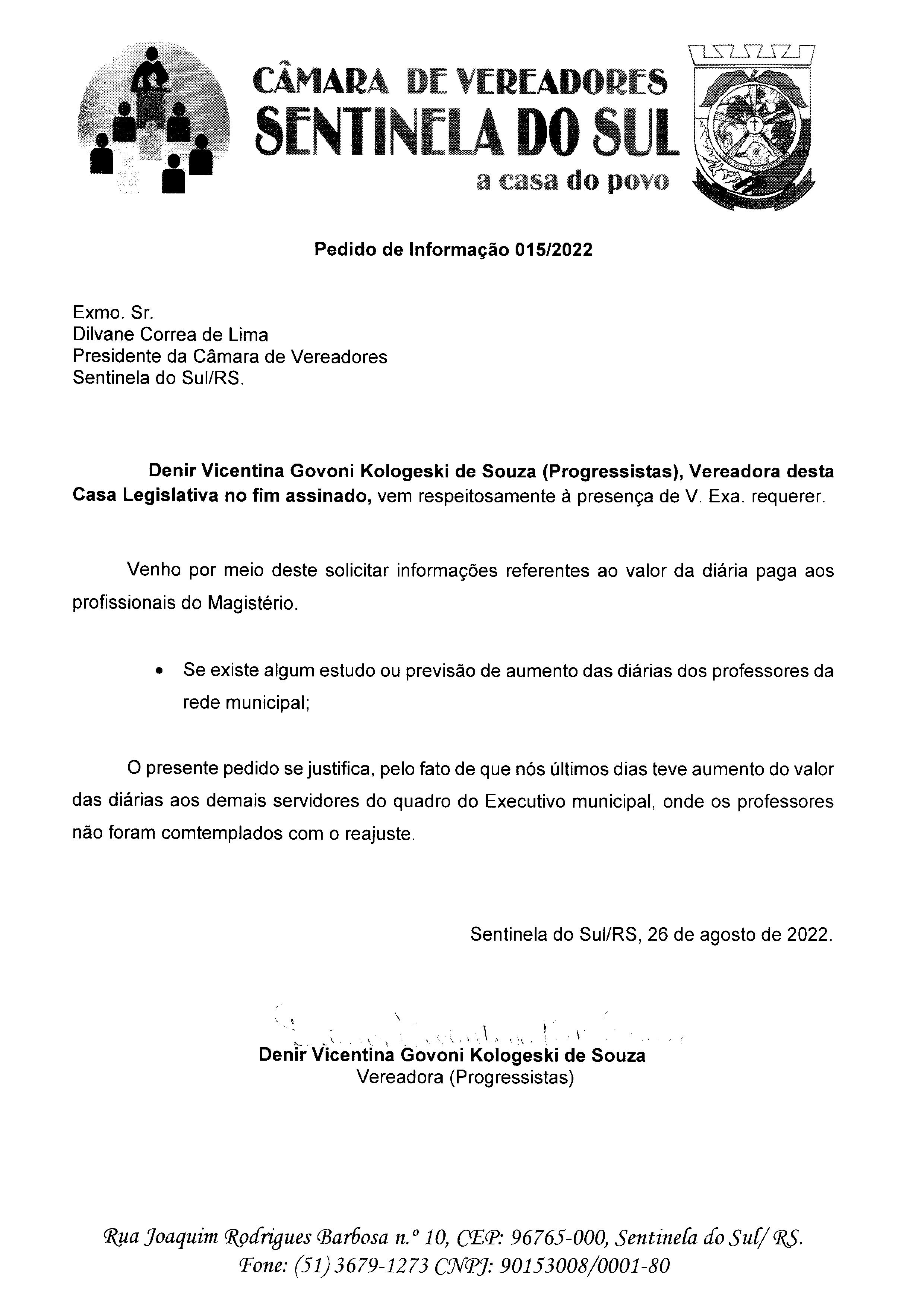 PEDIDO DE INFORMAÇÃO Nº 015/2022