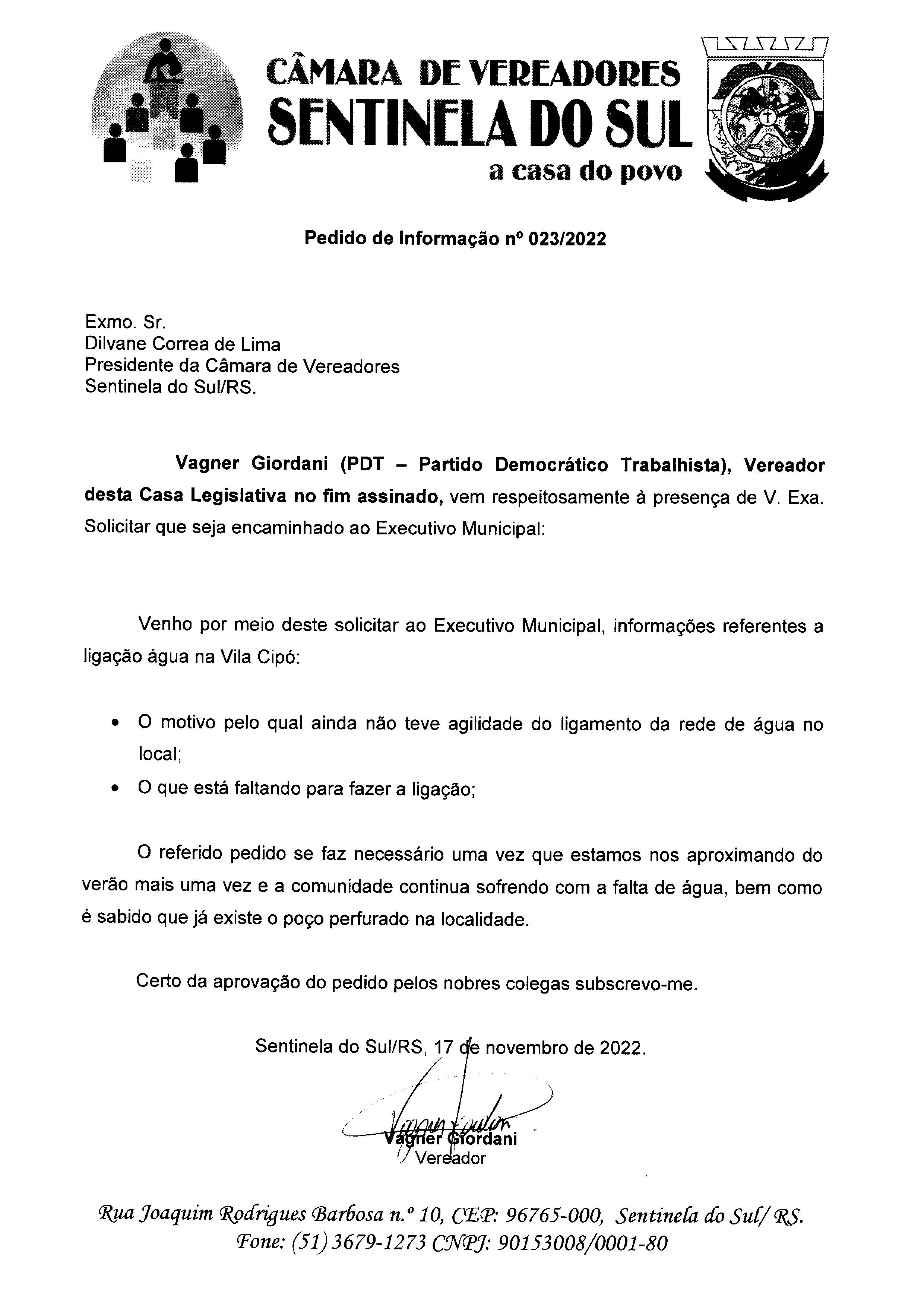 PEDIDO DE INFORMAÇÃO Nº 023/2022
