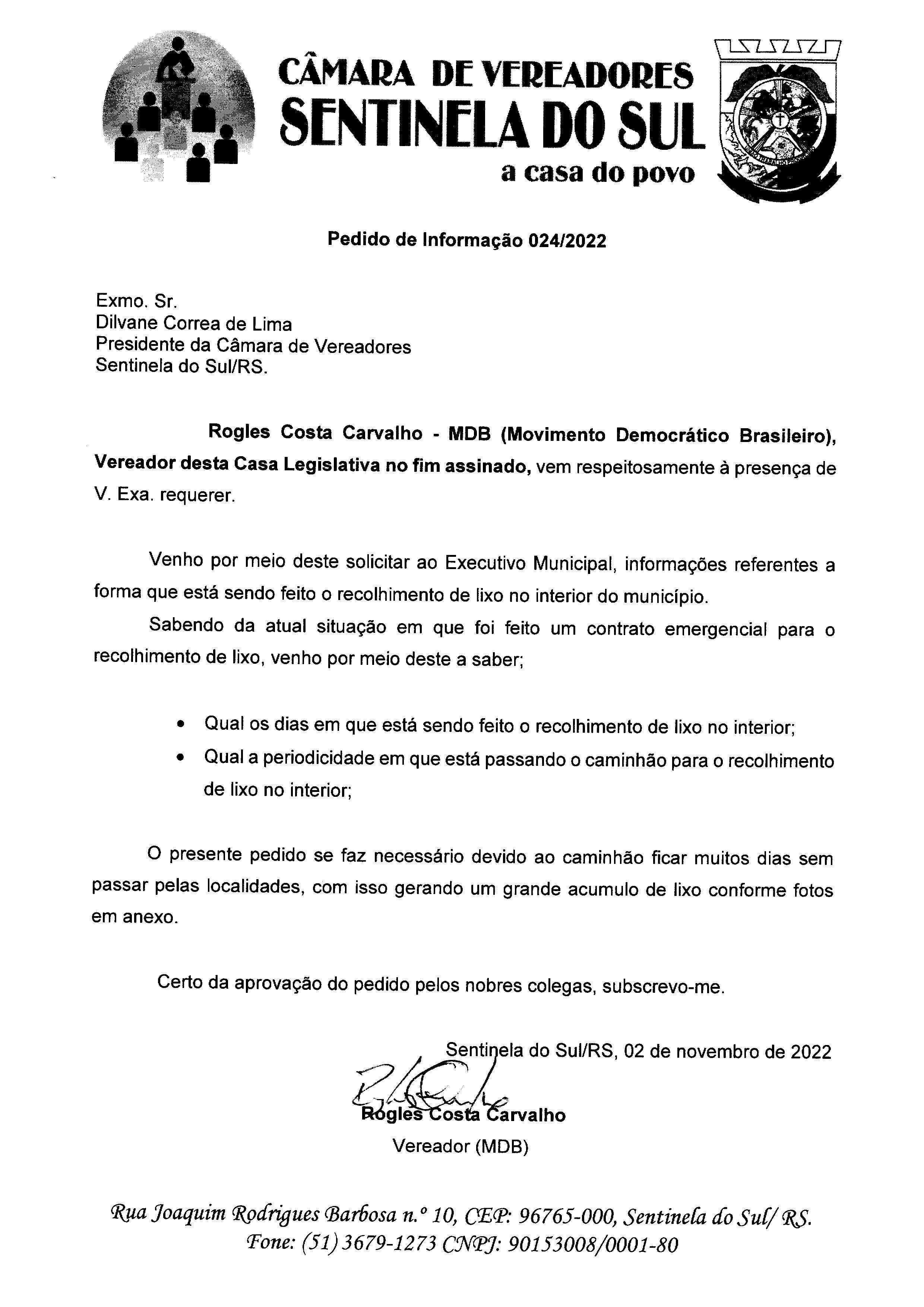 PEDIDO DE INFORMAÇÃO Nº 024/2022