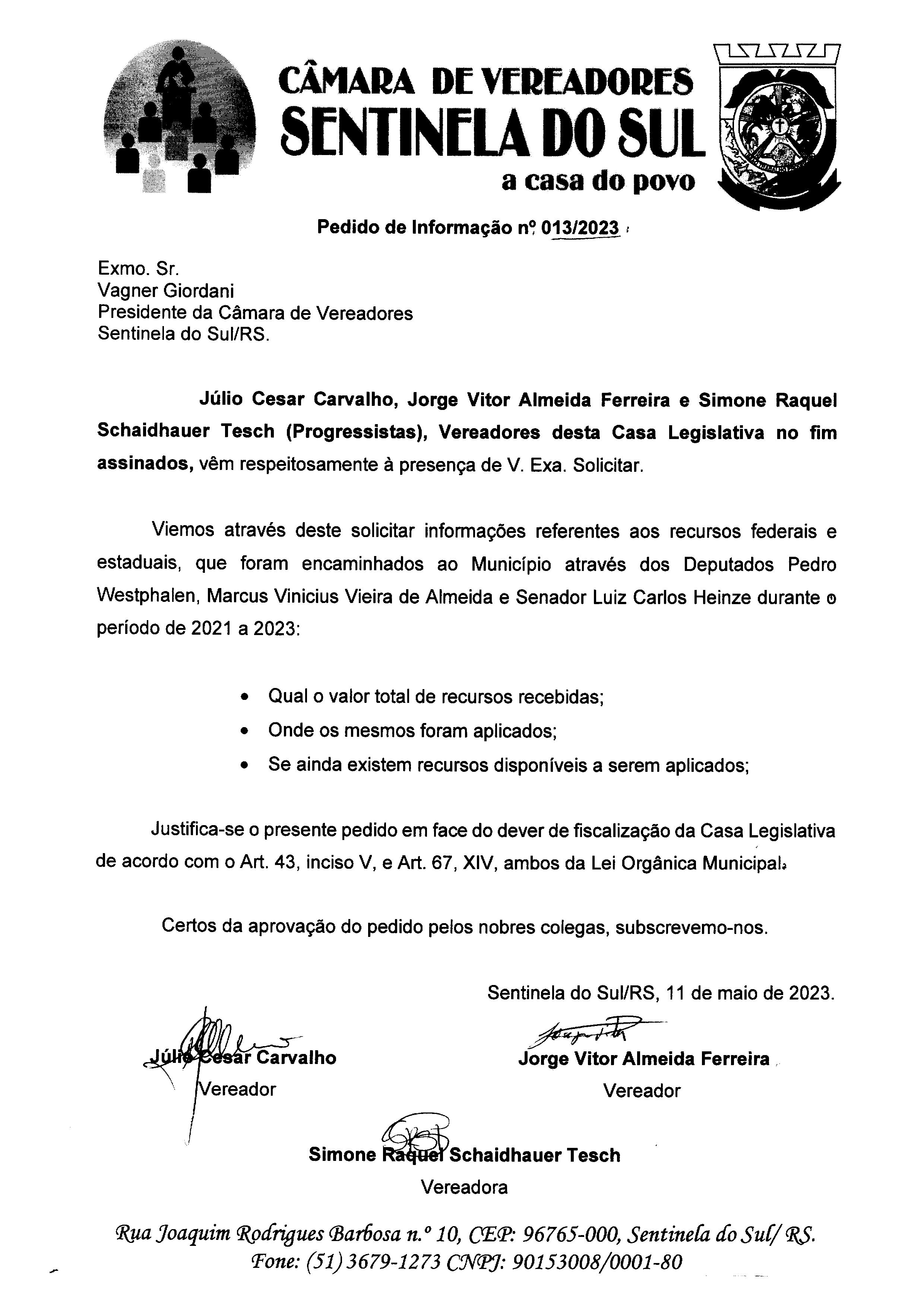 PEDIDO DE INFORMAÇÃO Nº 013/2023