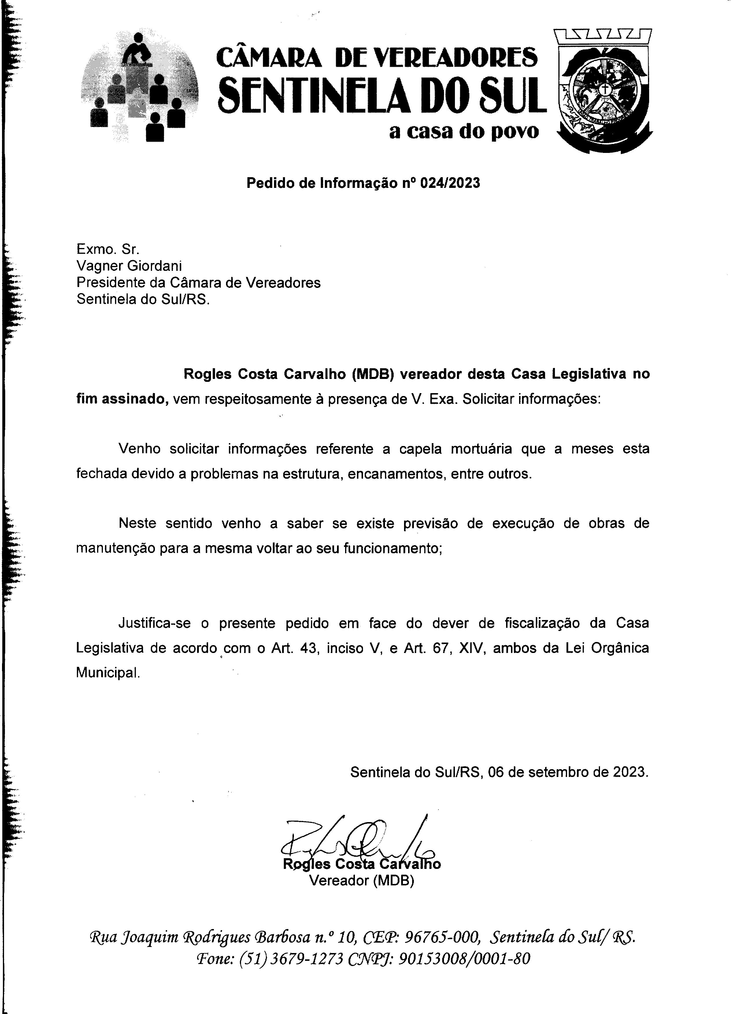 PEDIDO DE INFORMAÇÃO Nº 024/2023