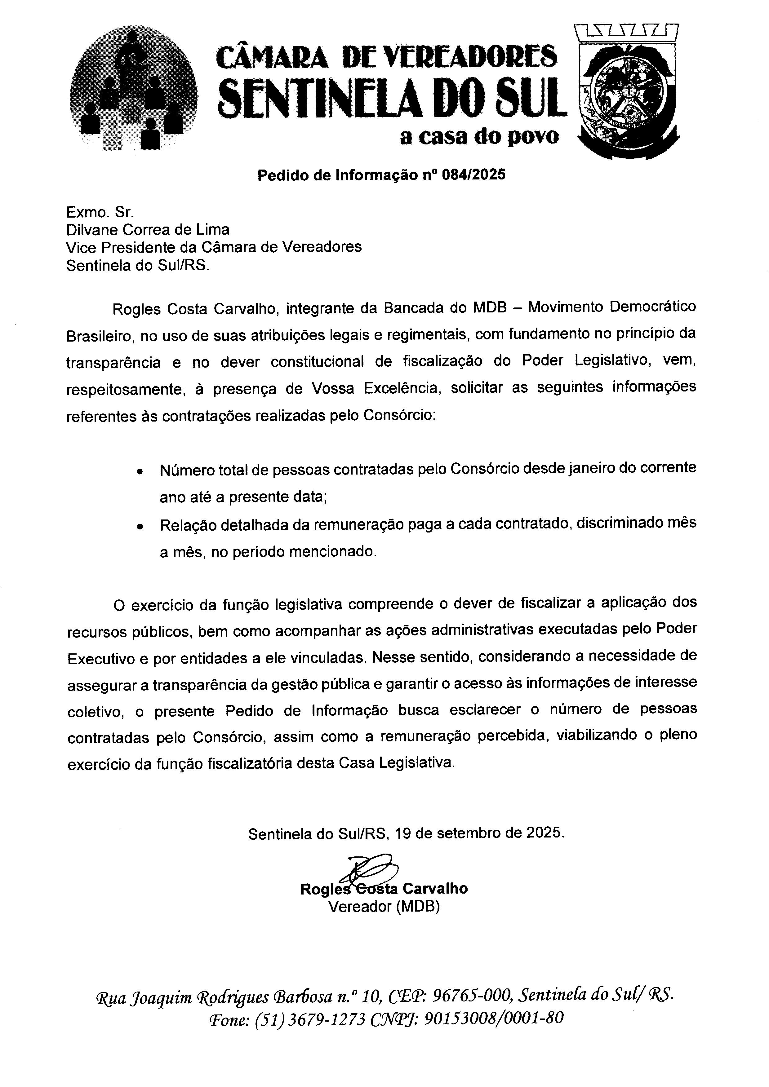 Pedido de Informação nº 084/2025