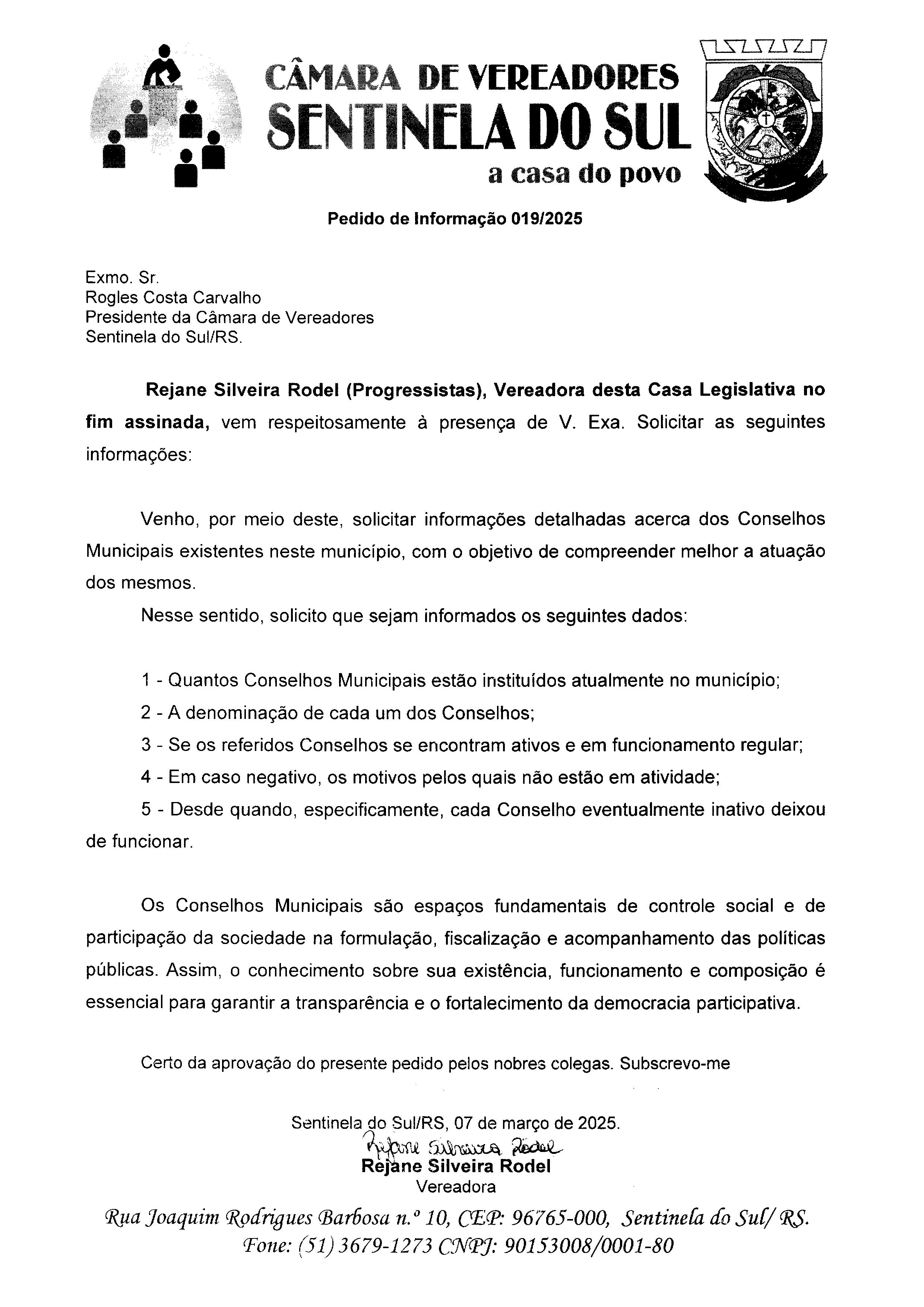 Assunto: Informações detalhadas acerca dos Conselhos Municipais existentes neste município