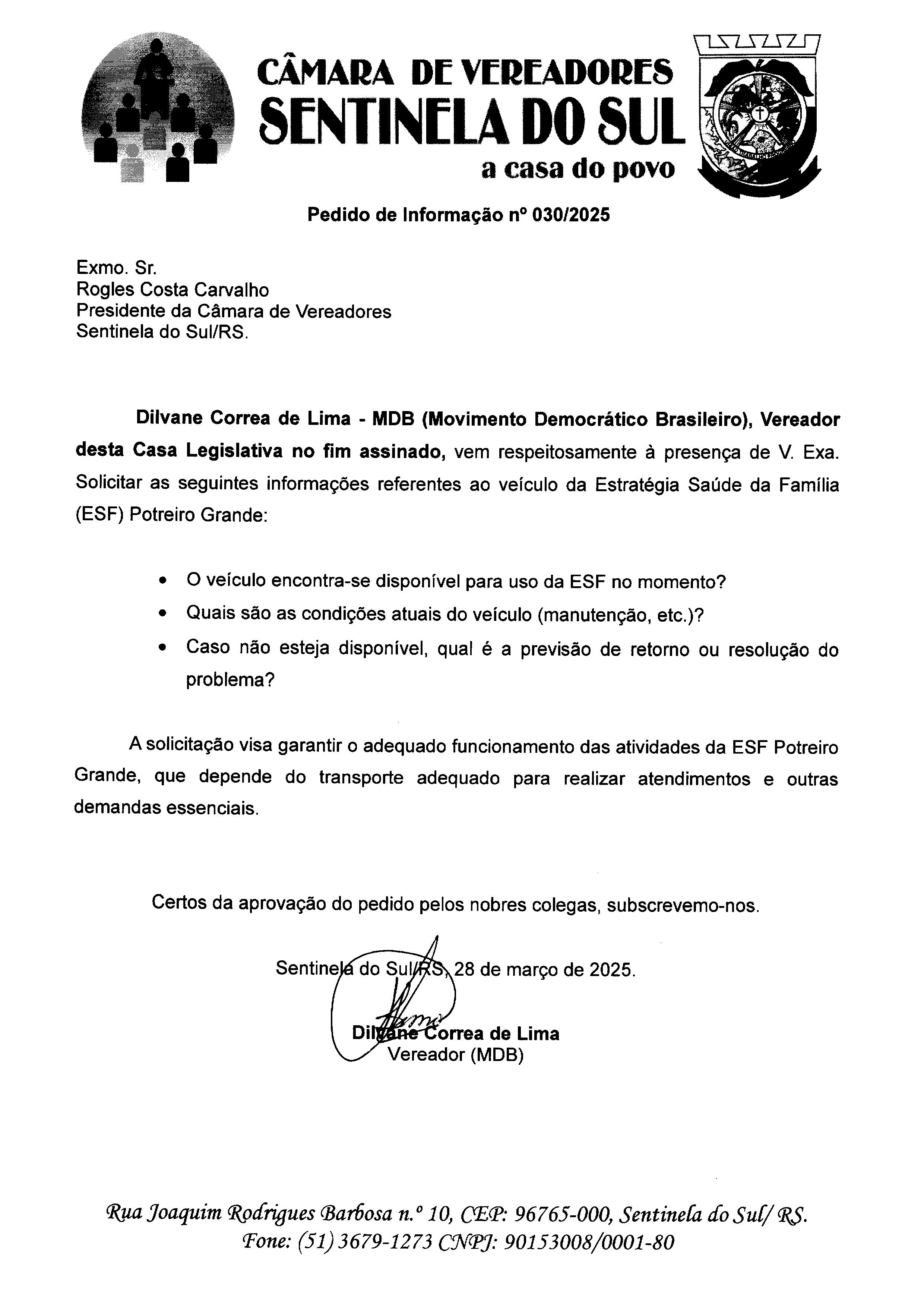 Pedido de Informação nº 030/2025