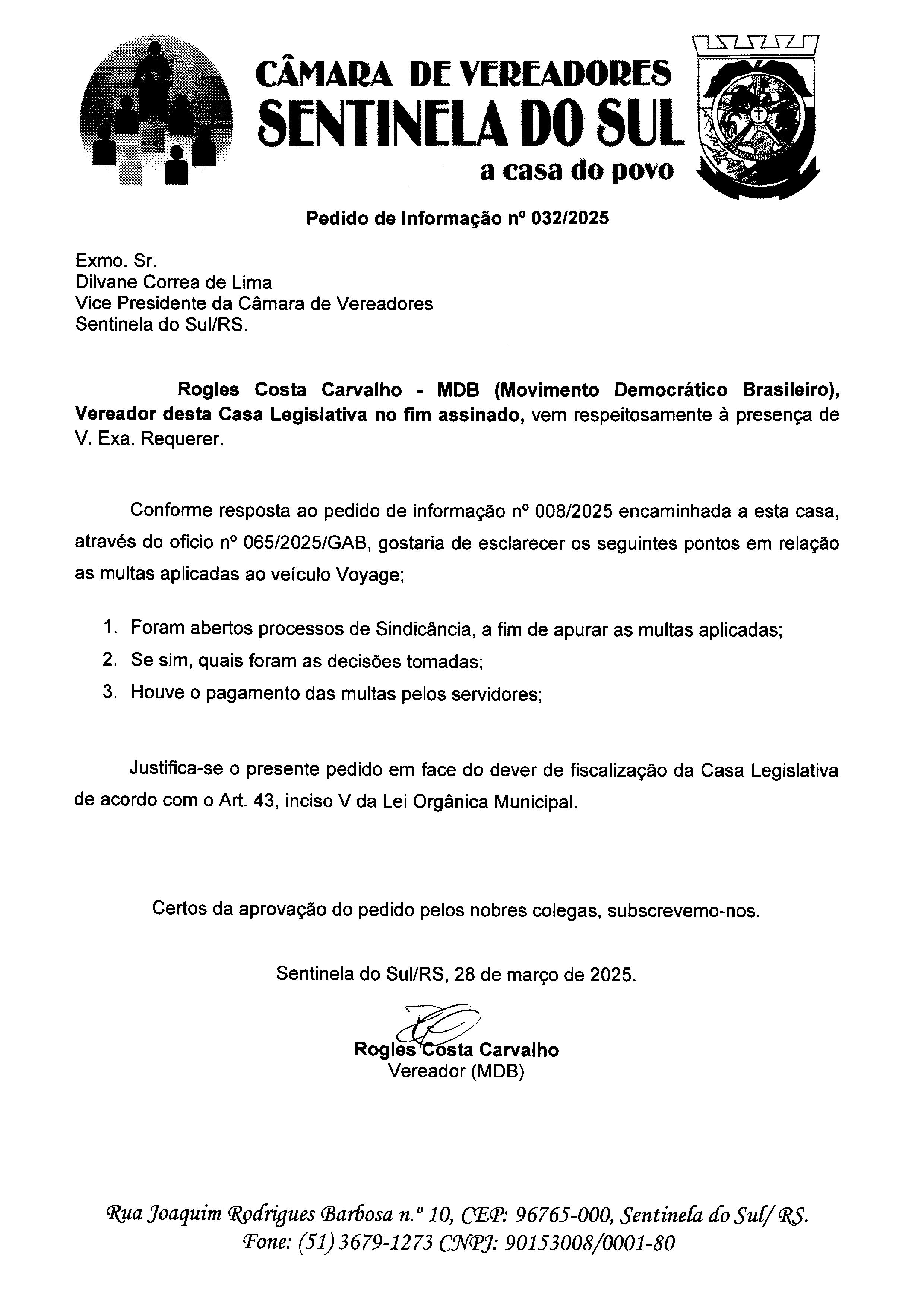 Pedido de Informação nº 032/2025