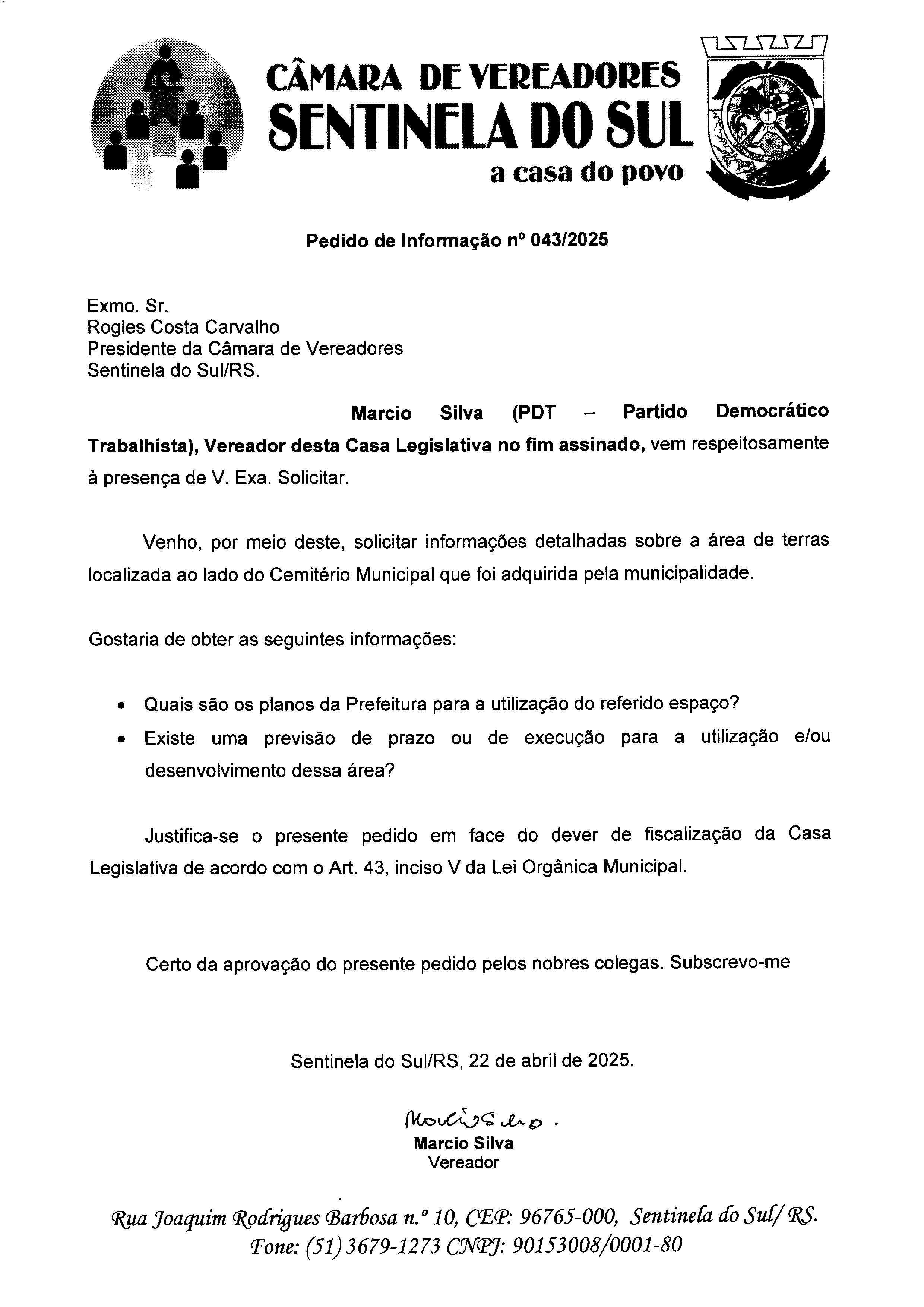 Pedido de Informação nº 043/2025