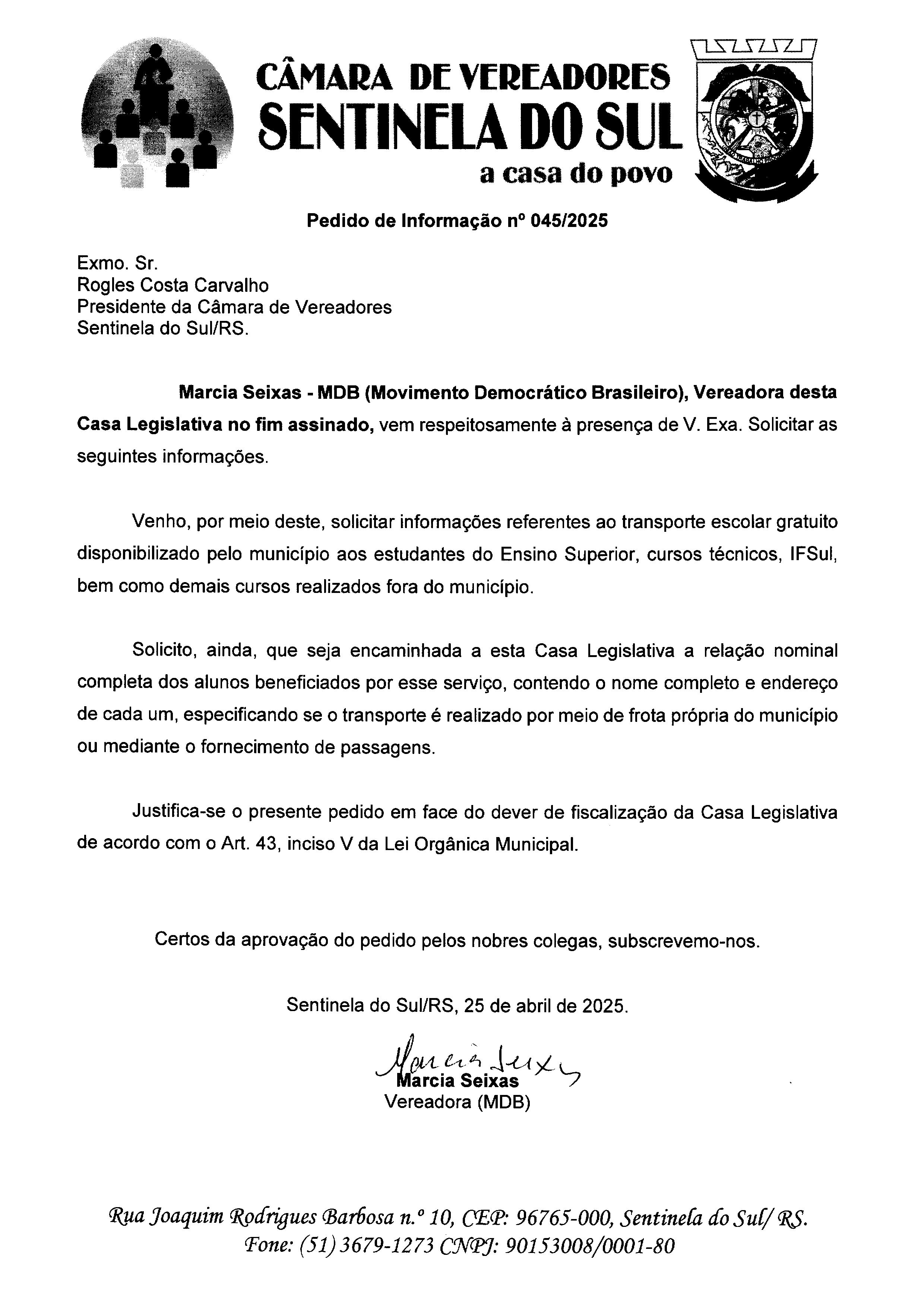 Pedido de Informação nº 045/2025