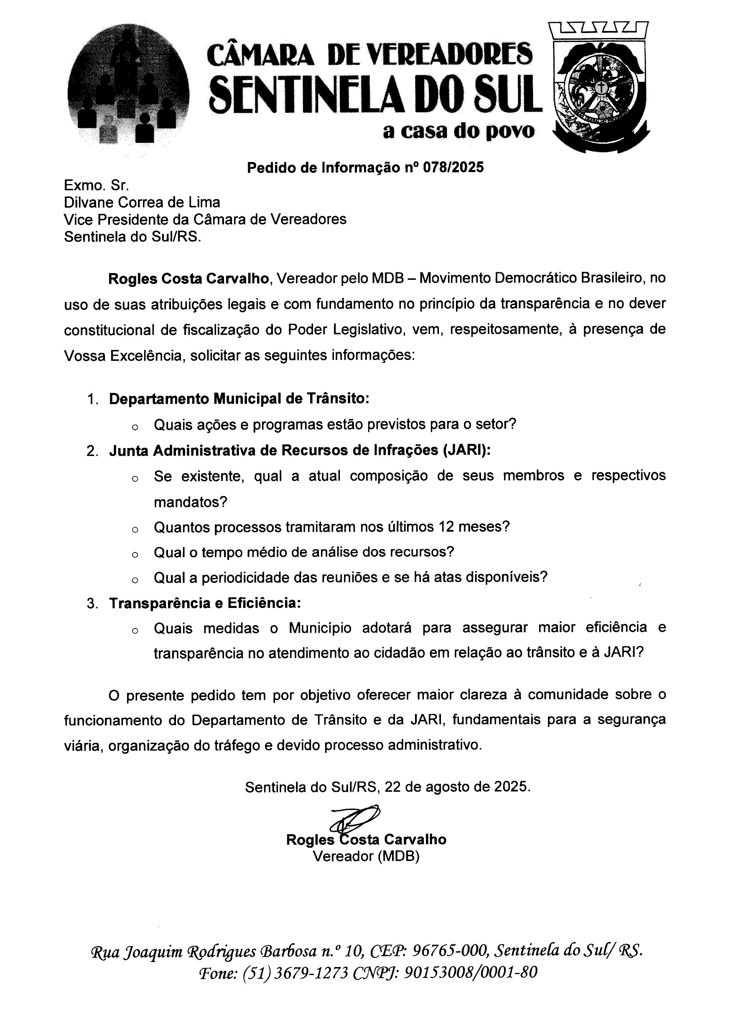 Pedido de Informação nº 078/2025