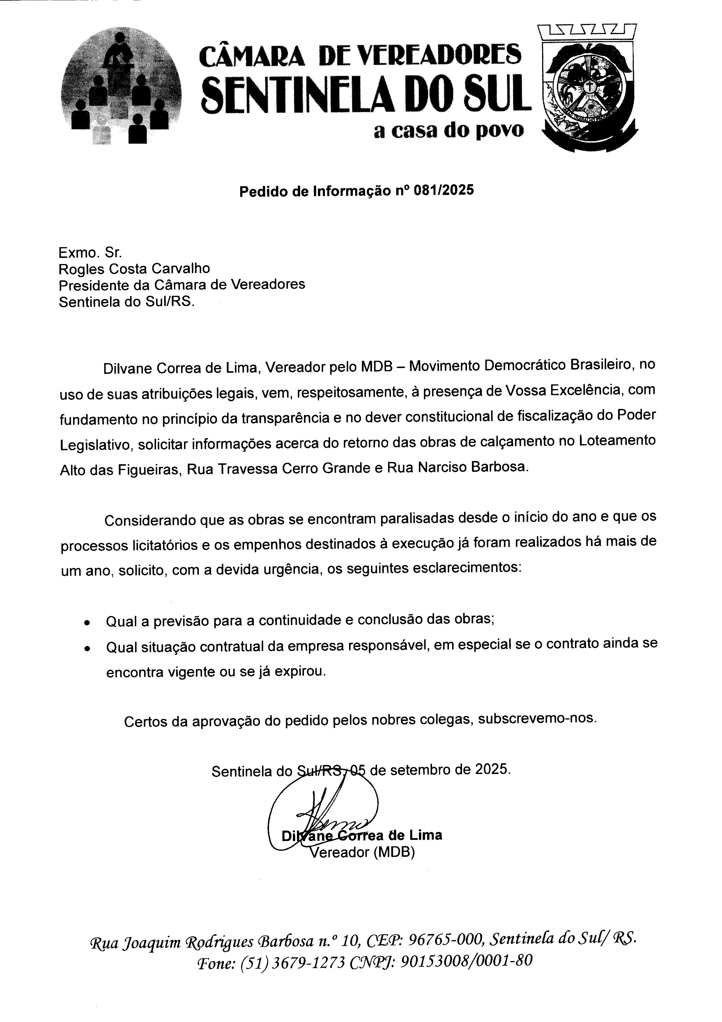 Pedido de Informação nº 081/2025