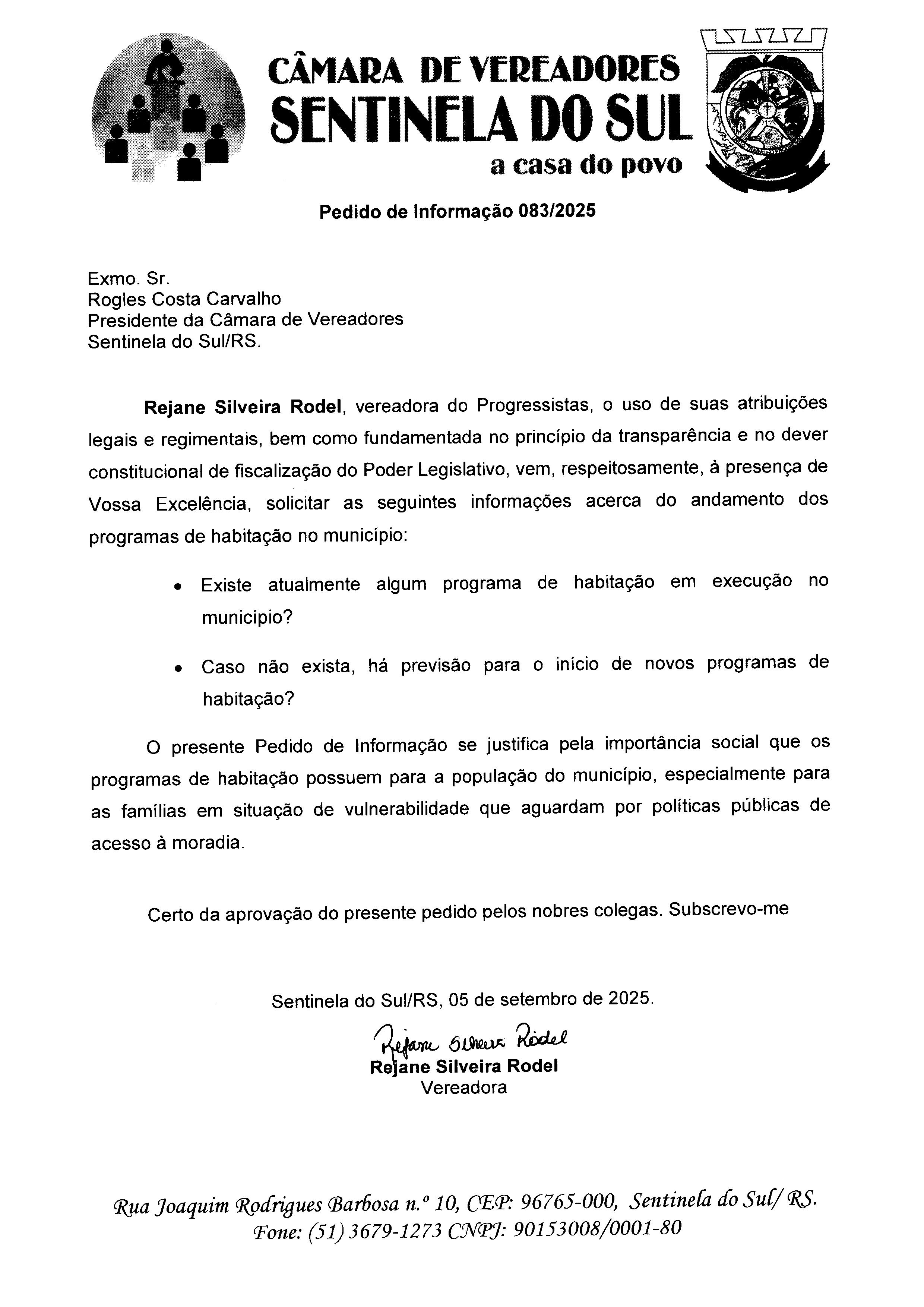 Pedido de Informação nº 083/2025