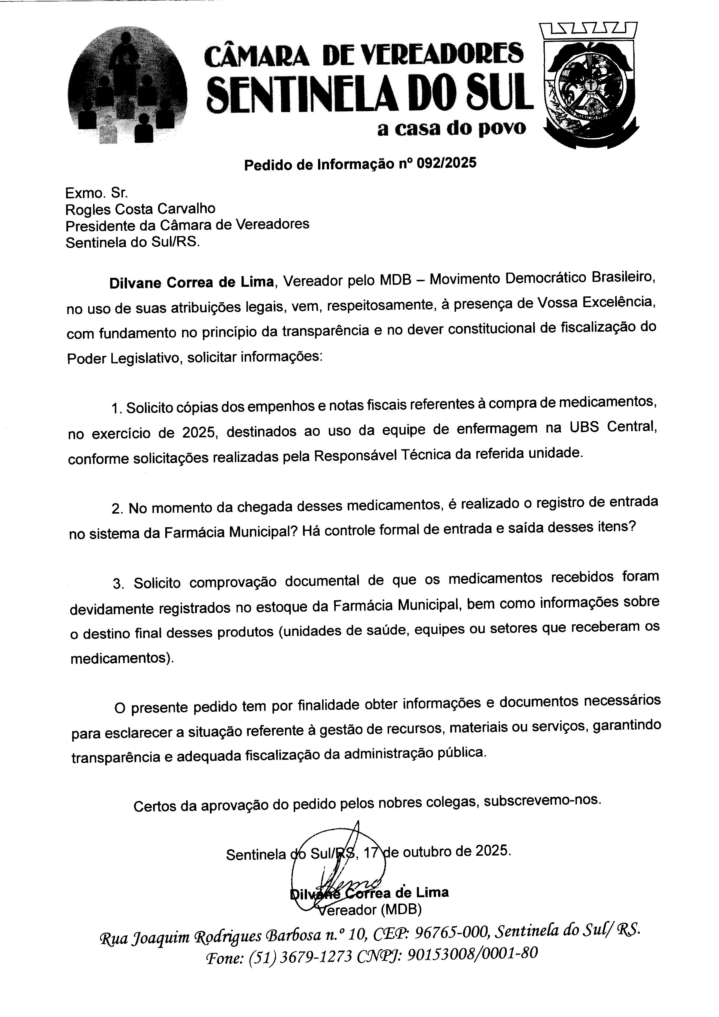 Pedido de Informação nº 092/2025