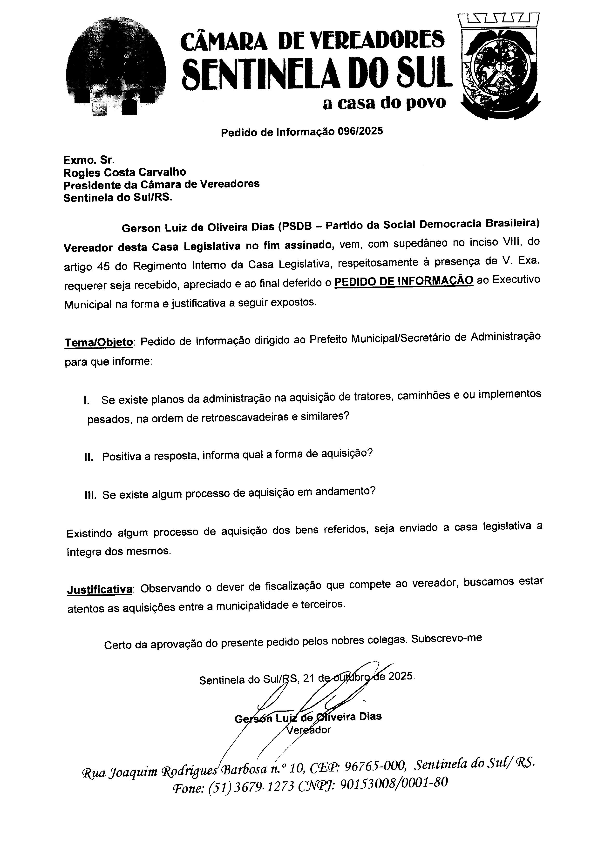 Autoria: Vereador Gerson Luiz de Oliveira Dias -