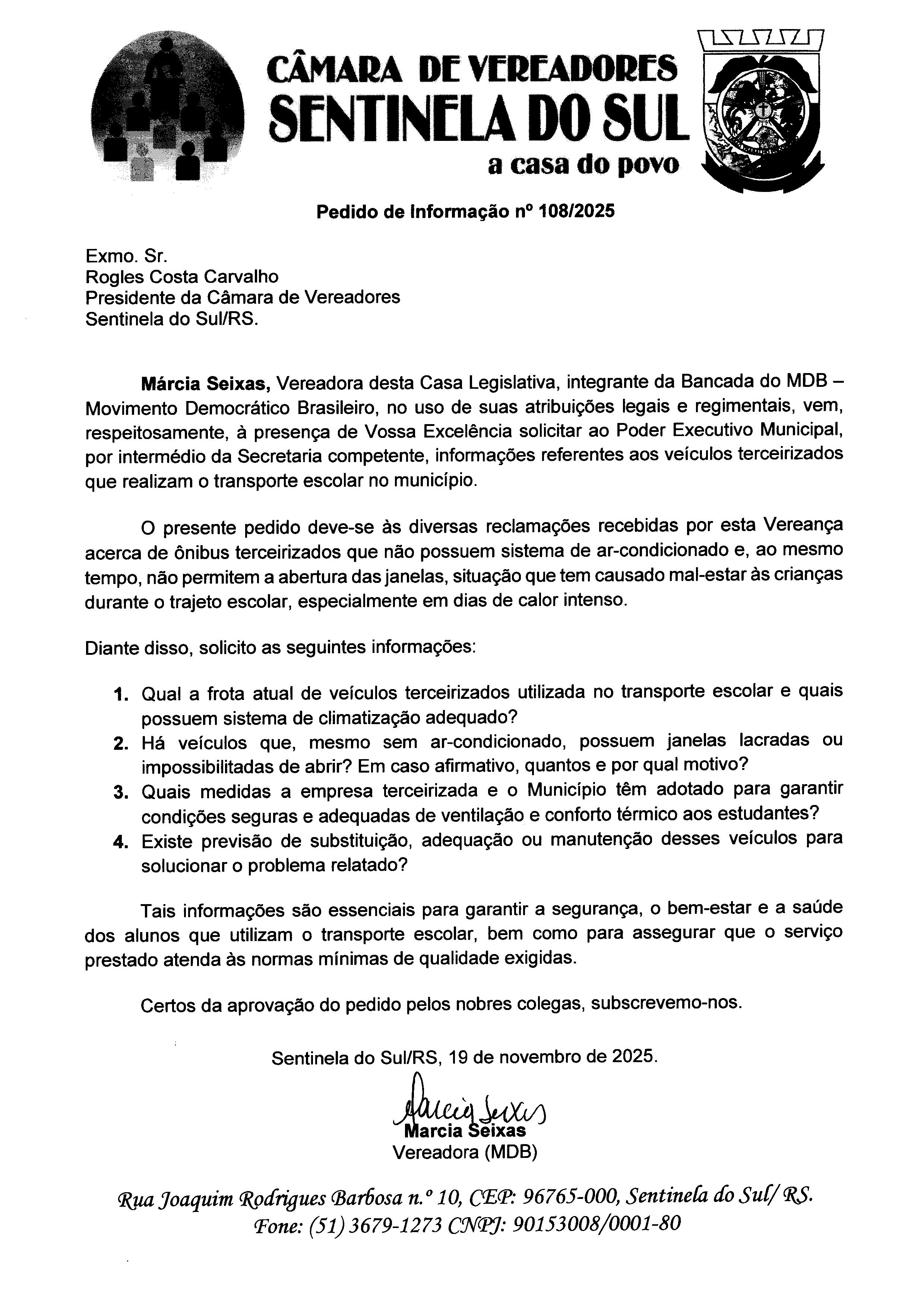 Assunto: Solicita informações referentes aos veículos terceirizados que realizam o transporte escolar no município.