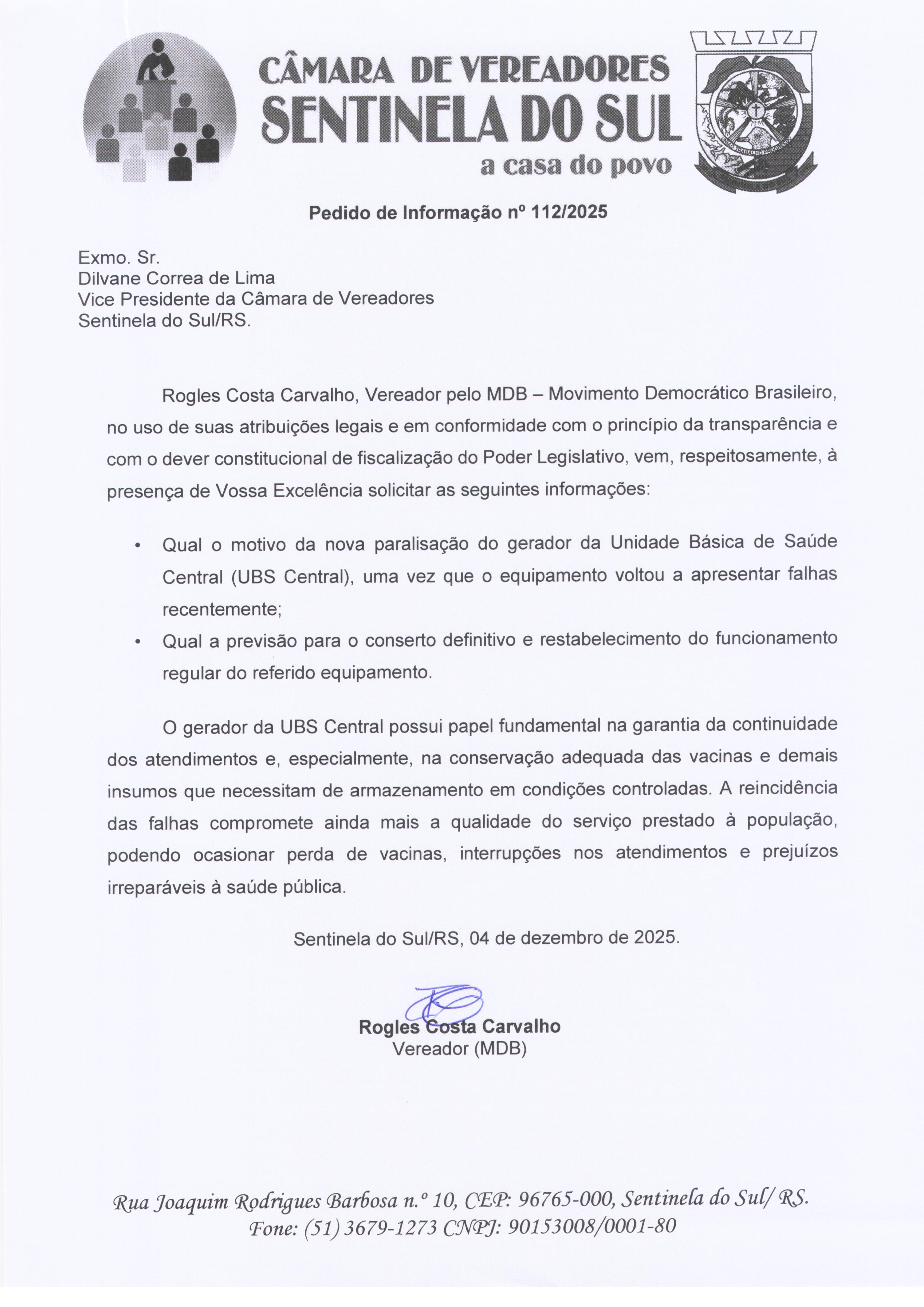 Pedido de Informação nº 112/2025